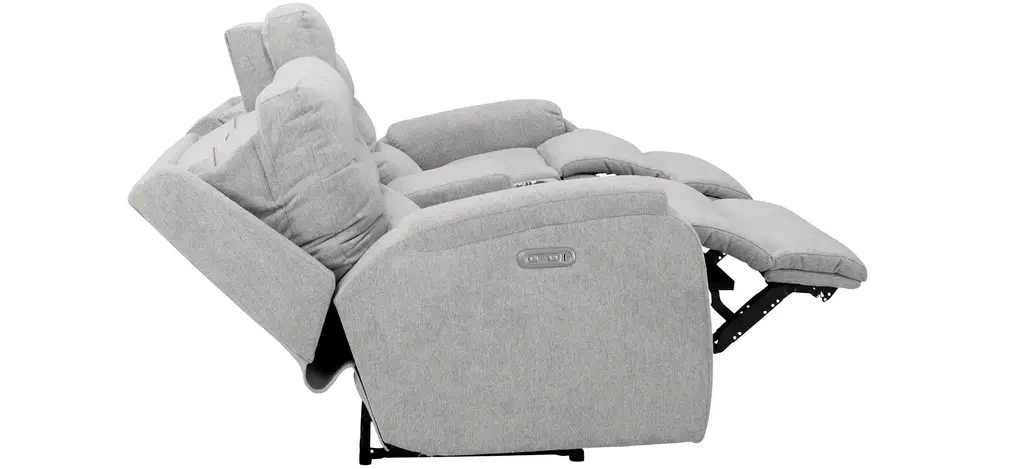 Whether you're gaming or watching movies, the Halenbeck Power Reclining Loveseat with Console makes it easy to recline and puts items like remotes and beverages close at hand. The spacious center console includes storage for glasses, magazines and other personal items and features two cup holders. Easy-to-access power controls with built-in USB charging ports in both arms allow you to independently adjust the headrest and recline, dialing in the right level of comfort for both people sitting. Designed to enhance your well-being, Arlo has pull-tufted, triple-divide back cushions for a distinctive look and optimal back support. Contoured seats with chaise pads take pressure off your legs as you sit, while our patented DualFlex Spring System provides firmness and flexibility. Rounded pad-over track arms take cushion your forearms-great for spending hours gaming or streaming movies.