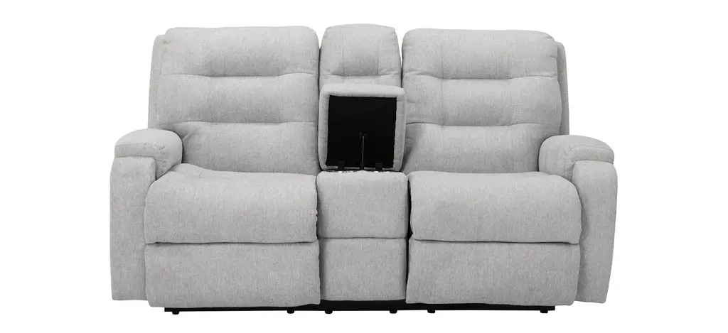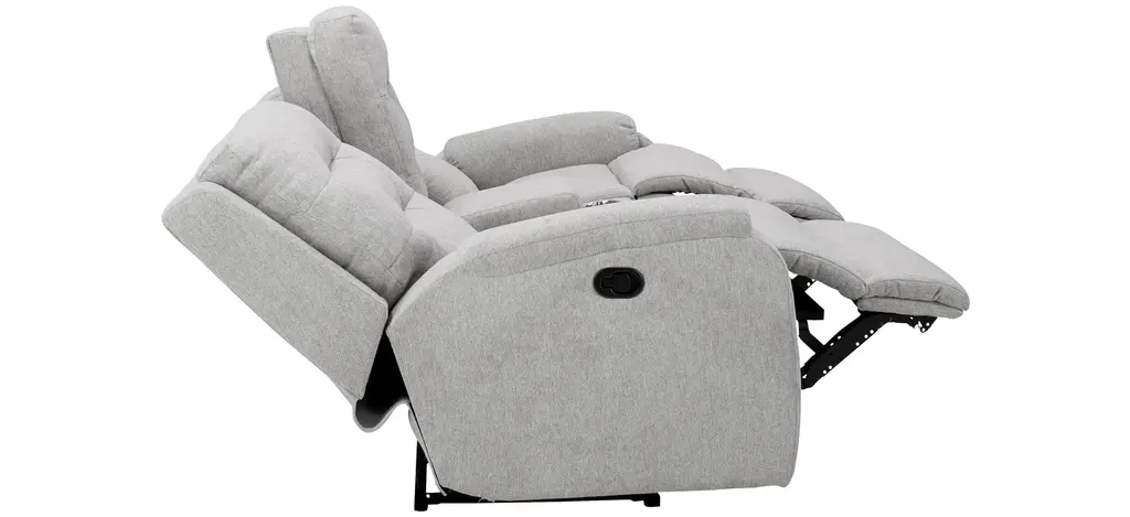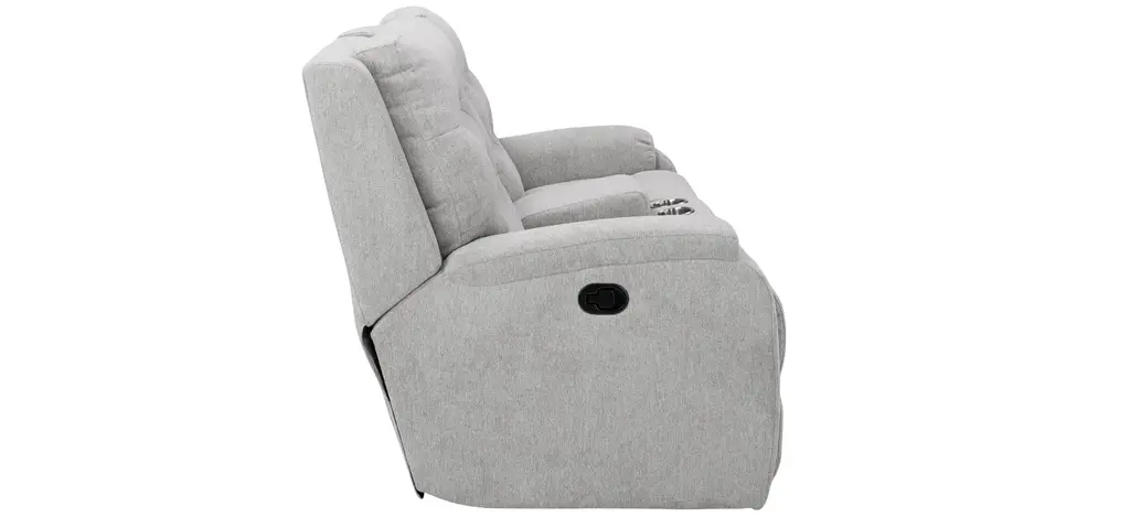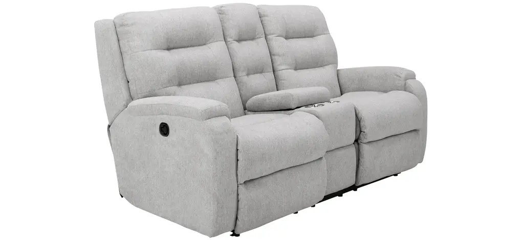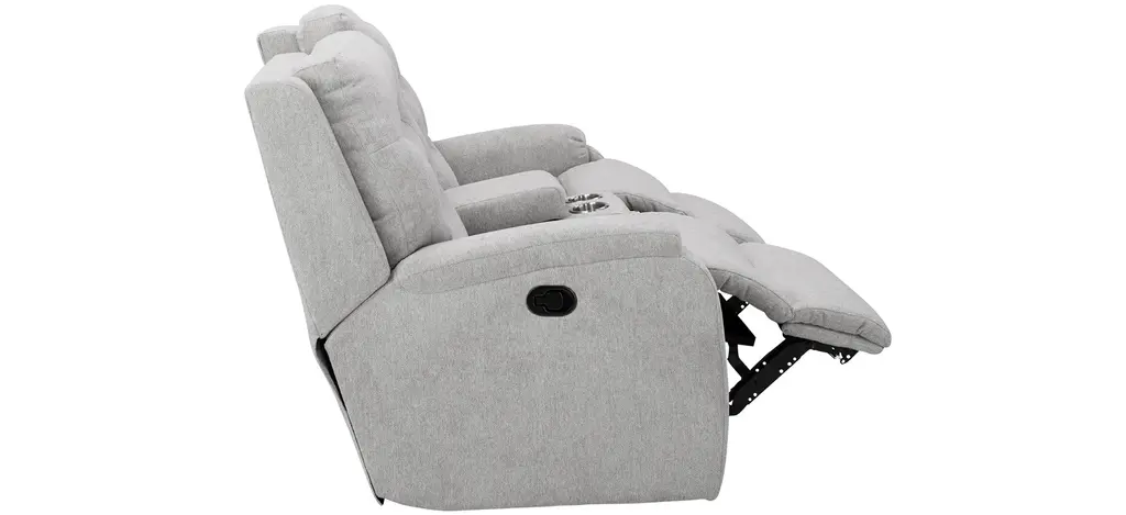 Whether you're napping or watching the big game, the Halenbeck Reclining Loveseat with Console keeps you comfy and puts items like remotes and beverages close at hand. The spacious center console includes storage for glasses, magazines and other personal items and features two cup holders. Designed to enhance your well-being, Halenbeck has pull-tufted, triple-divide back cushions for a distinctive look and comfortable feel. A contoured seat with chaise pad takes pressure off your legs as your sit, while our patented DualFlex Spring System provides firmness and flexibility. Rounded pad-over track arms cushion your forearms-something you'll really appreciate if you're spending hours gaming or streaming movies. Control the recline using an easy-access handle on either of the arms.