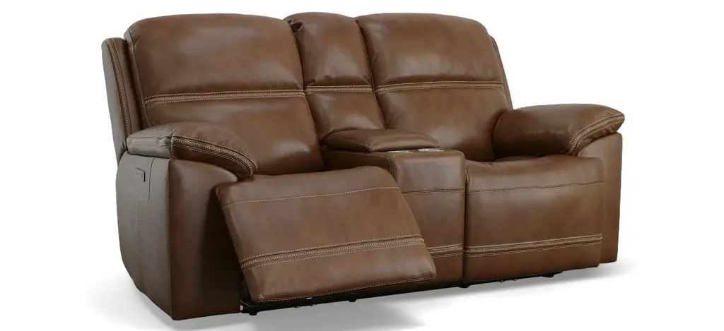 Inviting comfort and long-lasting support will make you want to stay nestled all day and night in our Jackson Power Reclining Loveseat. This loveseat offers fine-tunable relaxation for two with a dual power recline mechanism, adjustable headrests and Zero Gravity technology that reduces tension and pressure on the body. An attractive cross-stitch pattern on the back, armrest edges and footrests add distinctive style, while the waterfall chaise footrests and pillowy arms provide comfortable support. Convenient features such as USB charging ports for mobile devices and a center storage console for drinks and remotes ensure you can settle in and relax for hours on end. Available in two color choices of luxurious top grain leather, the Jackson power reclining loveseat with console will remain looking beautiful in your home for years to come.