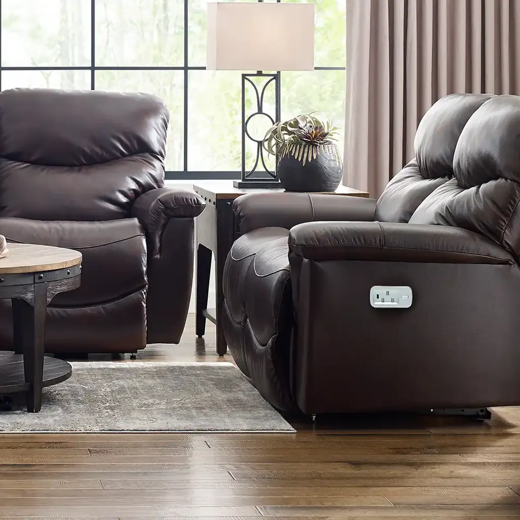 James Power Reclining Loveseat W/ Headrest & Lumbar
