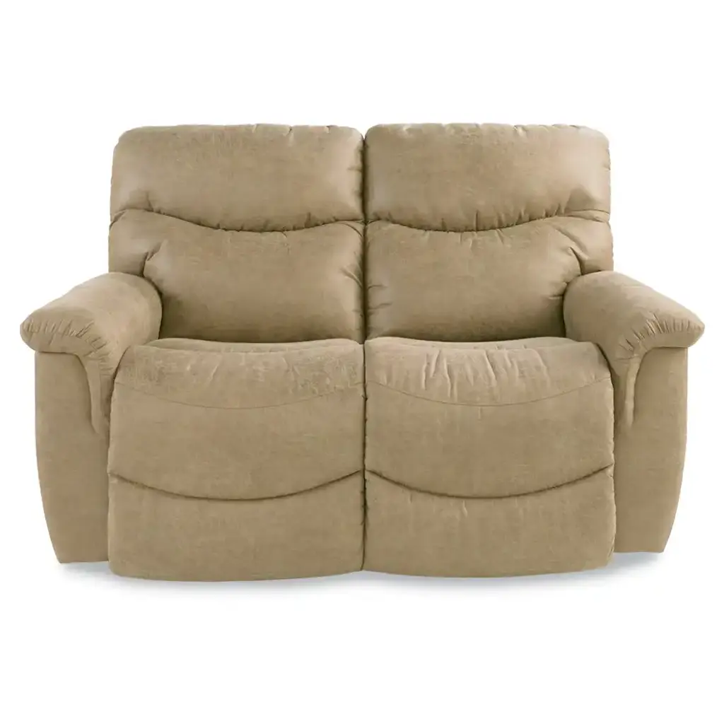The roomy James Power Reclining Loveseat with Headrest and Lumbar has cozy cushioning and laid-back style. Plush bucket chaise seats, pillowy backs and armrests, and power-adjustable head-to-toe support let you refine comfort in this haven for two!