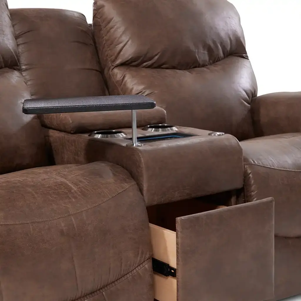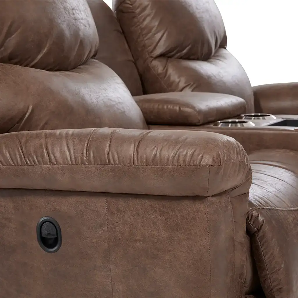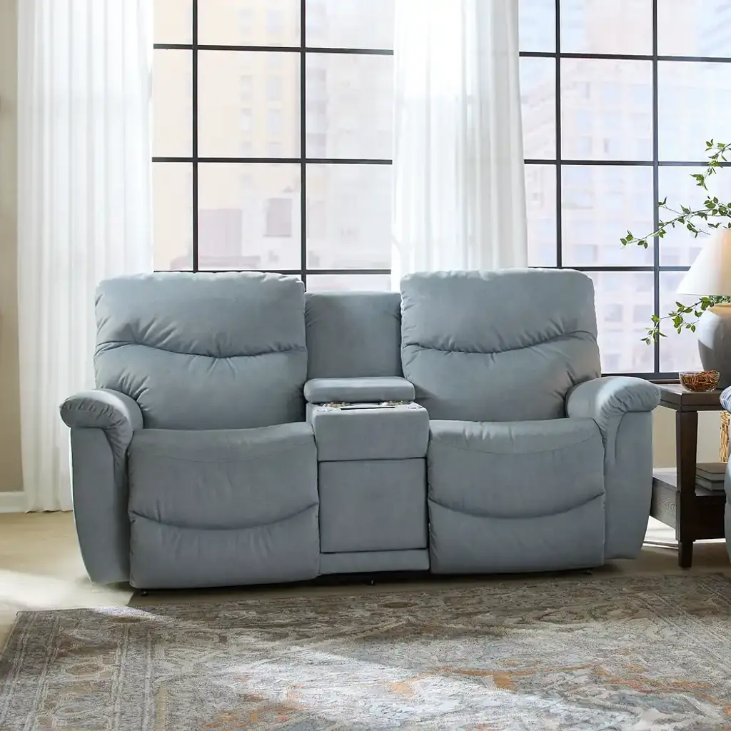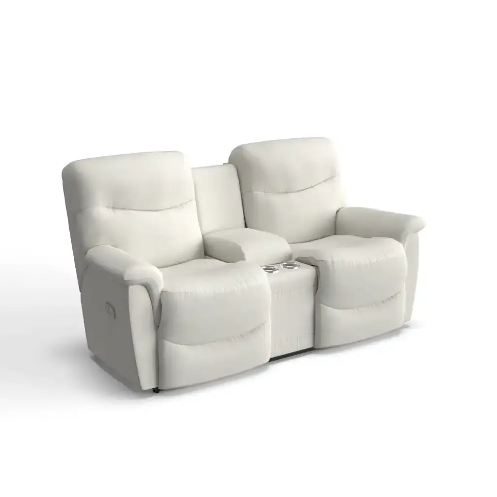 Sometimes you can have it all, and our James reclining loveseat is proof. Comfortable, cool and laid back, James makes relaxing look as great as it feels. Perfect for movie night or game day, with convenient built-in storage and two cup holders. With inviting bucket style seats and chaise legrests that cradle you in support while stitched pillow back styling and pillow top arms pamper you in softness.