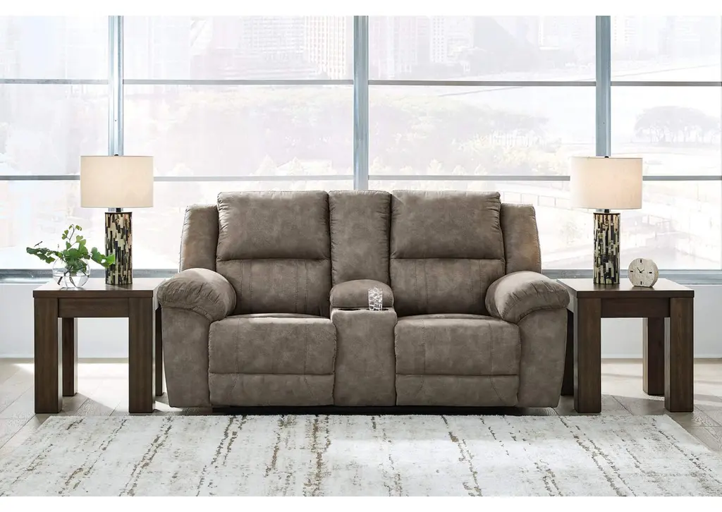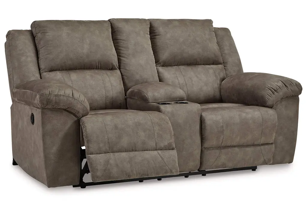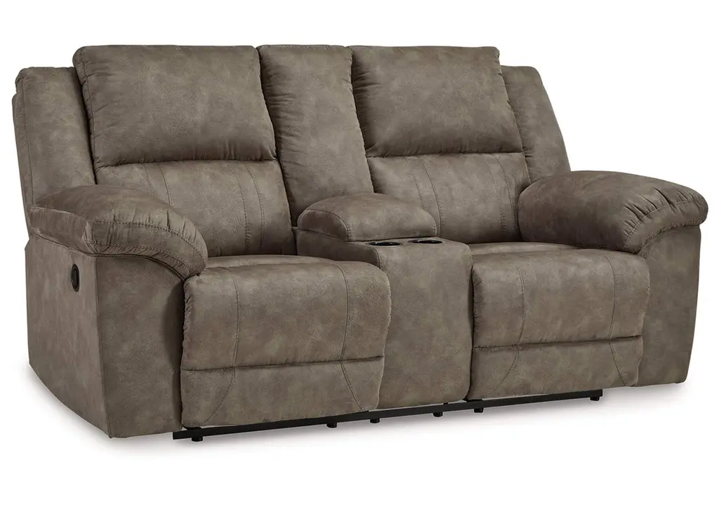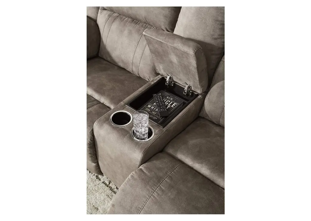 Is being too comfortable even possible? It’s worth finding out in the Laresview reclining loveseat with console. Wrapped in the plushest of neutral faux leather upholstery, it's perfectly cushioned in all the right places. We love the loveseat's super-wide seating, with plenty of room for two to cuddle up. A center console with cup holders and storage blend form and function. And its effortless reclining elevates your comfort level into the stratosphere. Weight 235.000 lbs. (105.75kgs.)