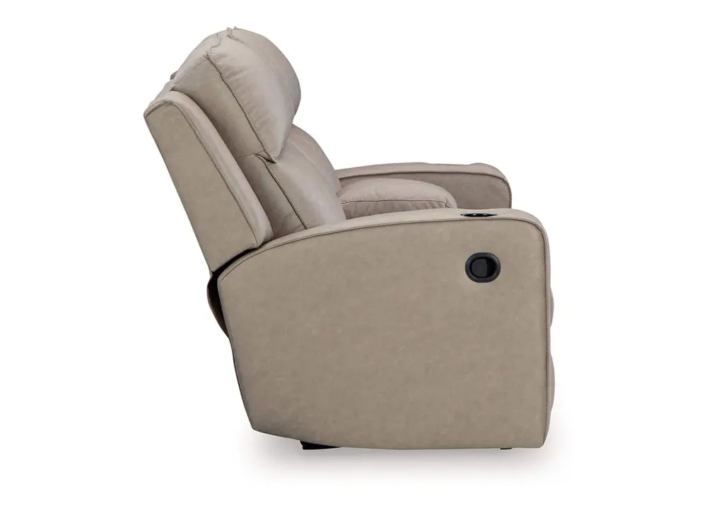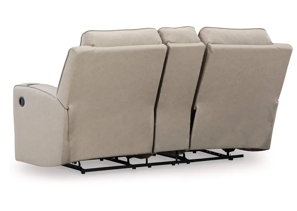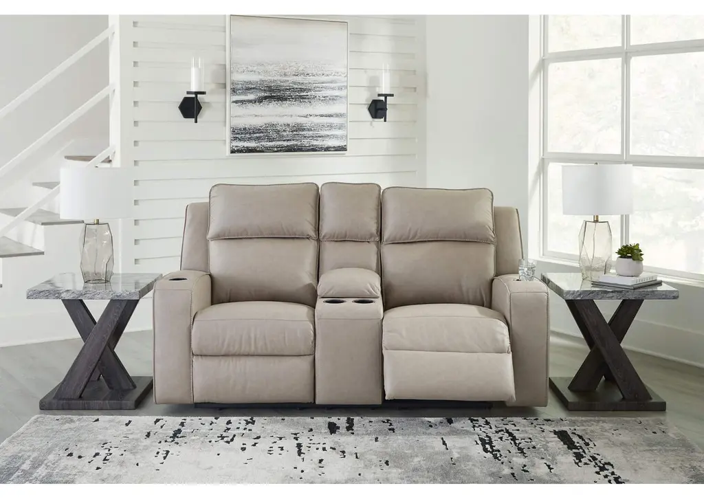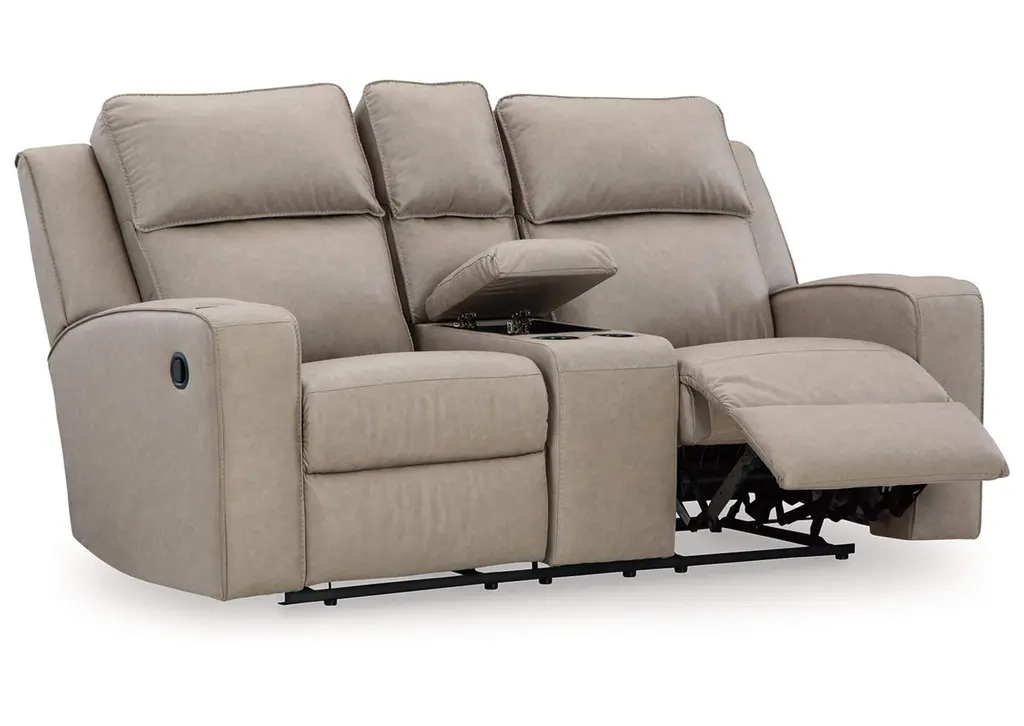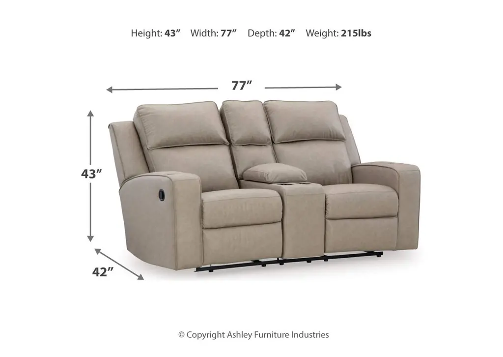 Indulge your lust for comfort and love for contemporary design with the Lavenhorne reclining loveseat. Made for easy everyday living, it’s upholstered in a heavyweight padded faux leather and accented with contrast jumbo stitching for fashion-forward flair. Sleek track arms elevate the look with a touch of modern sensibility. A padded center console with dual cup holders completes the experience. Weight 215.000 lbs. (96.75kgs.)
