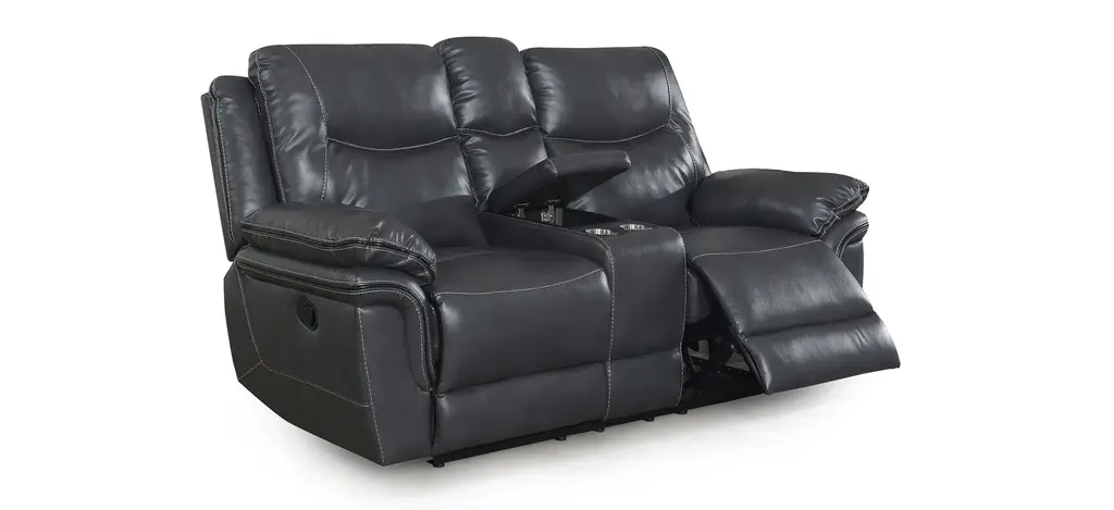 Experience ultimate comfort and convenience with the Marigold Black Power Reclining Loveseat with USB. This casual-style loveseat, upholstered in luxurious 100% leather, offers a sleek and timeless addition to any living space. Designed with high-density foam padding over pocket coils, it ensures maximum relaxation, while the one-touch power control allows for adjustable reclining positions. The built-in USB charging ports add a modern touch, making it perfect for contemporary living.