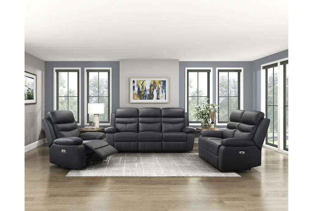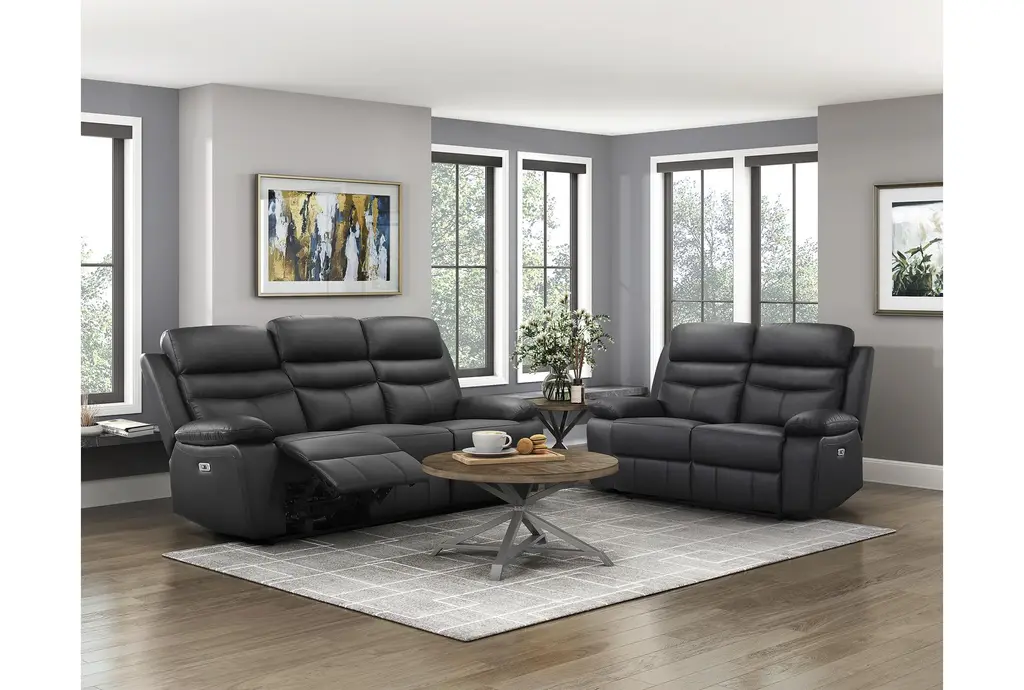 Marigold Black Leather 64" Power Reclining Loveseat With Usb