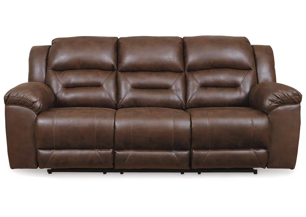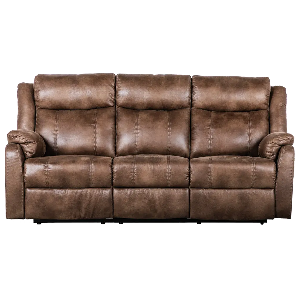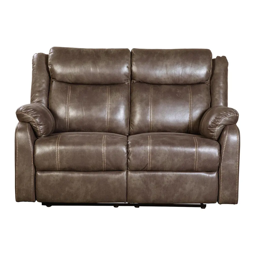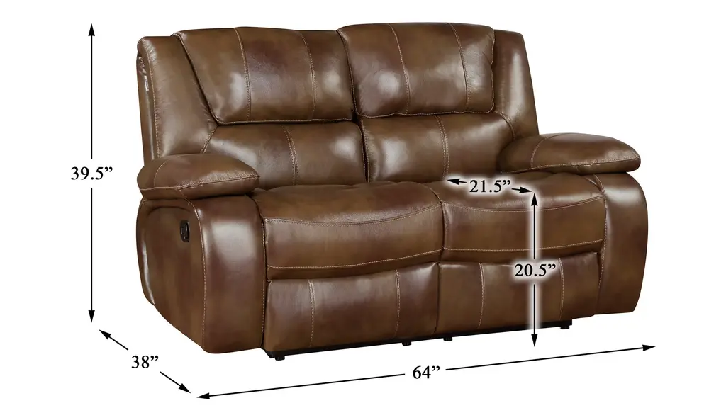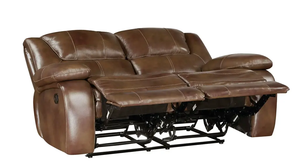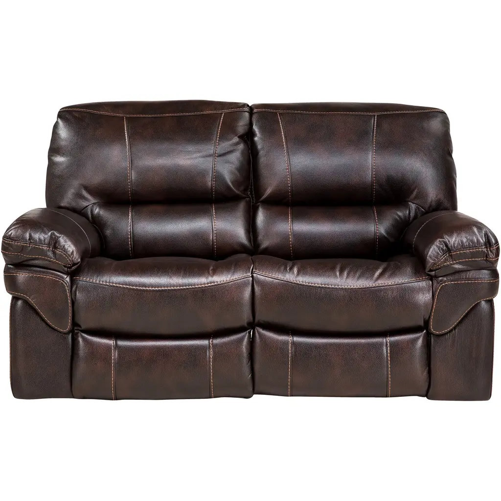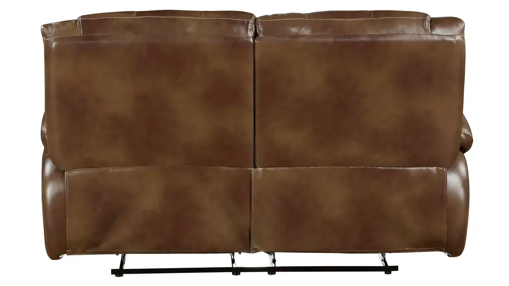 Comfort and style pair to create the casual look of the Midwood Double Reclining Loveseat. The plush seating and transitional frame of the love seat features top grain buffalo leather where the body touches, with faux leather covering the remaining areas, complementing your home's d_cor. The dual manual motion recliners of the love seat are engaged with the pull of the side mounted tabs.