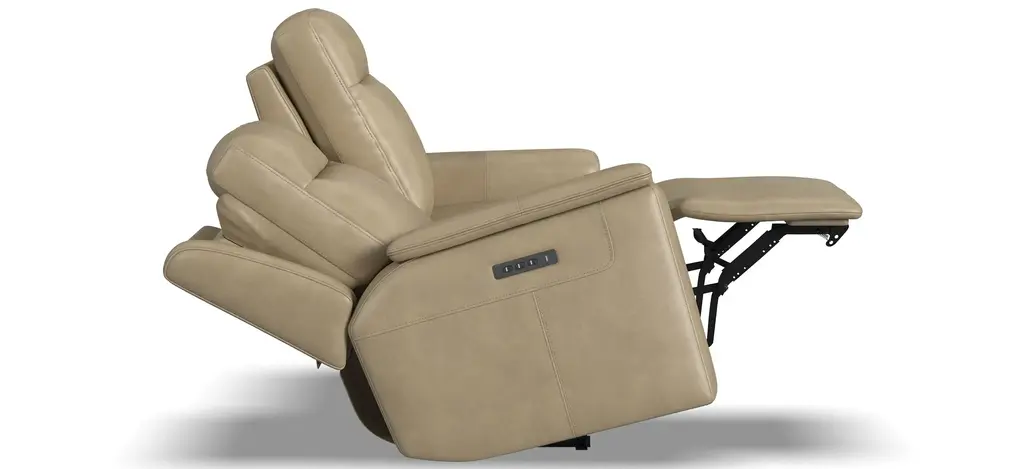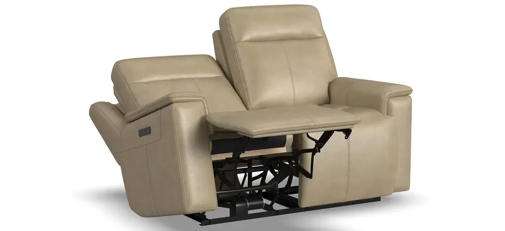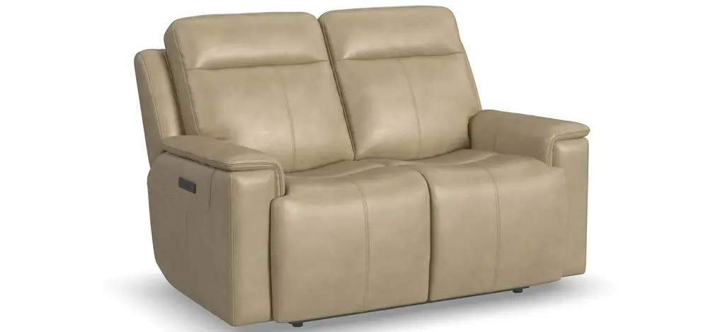 Ergonomic support meets elevated aesthetics with the Odell Power Reclining Loveseat. Featuring clean lines, thin pad-over arms and subtle pull tufting on the high divided backs, this loveseats modern silhouette serves as an attractive complement to any living space. Triple power functionality allows for independent adjustment of both headrests, lumbar supports and recline for customized relaxation, while Zero Gravity technology provides a feeling of weightlessness and reduces pressure on the body. Use the convenient built-in USB ports to easily charge your mobile devices without leaving your seat. Available in two beautiful color options, the Odell power reclining loveseat is upholstered in luxurious, long-lasting top grain leather to add polish to any room.