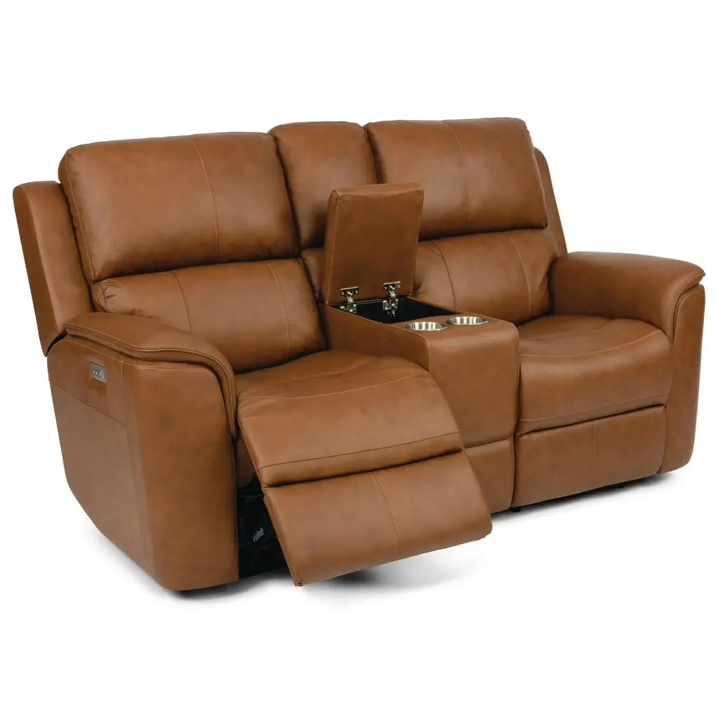 Power Reclining Loveseat With Power Headrest, Power Lumbar Support And Console