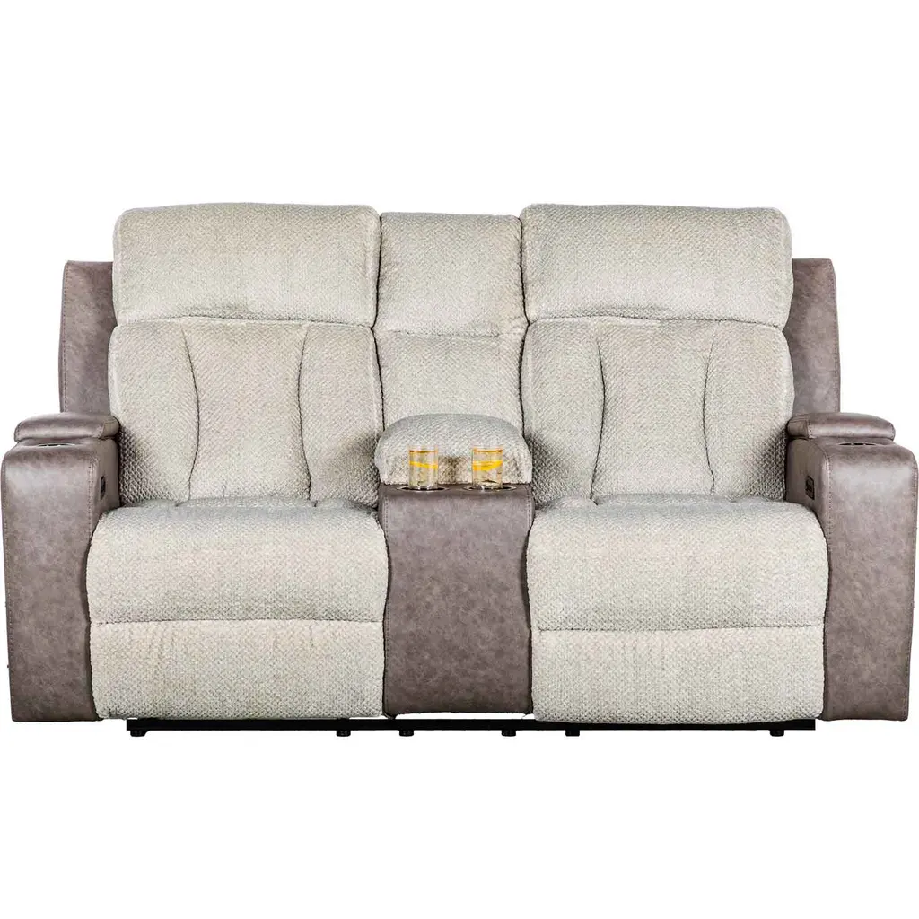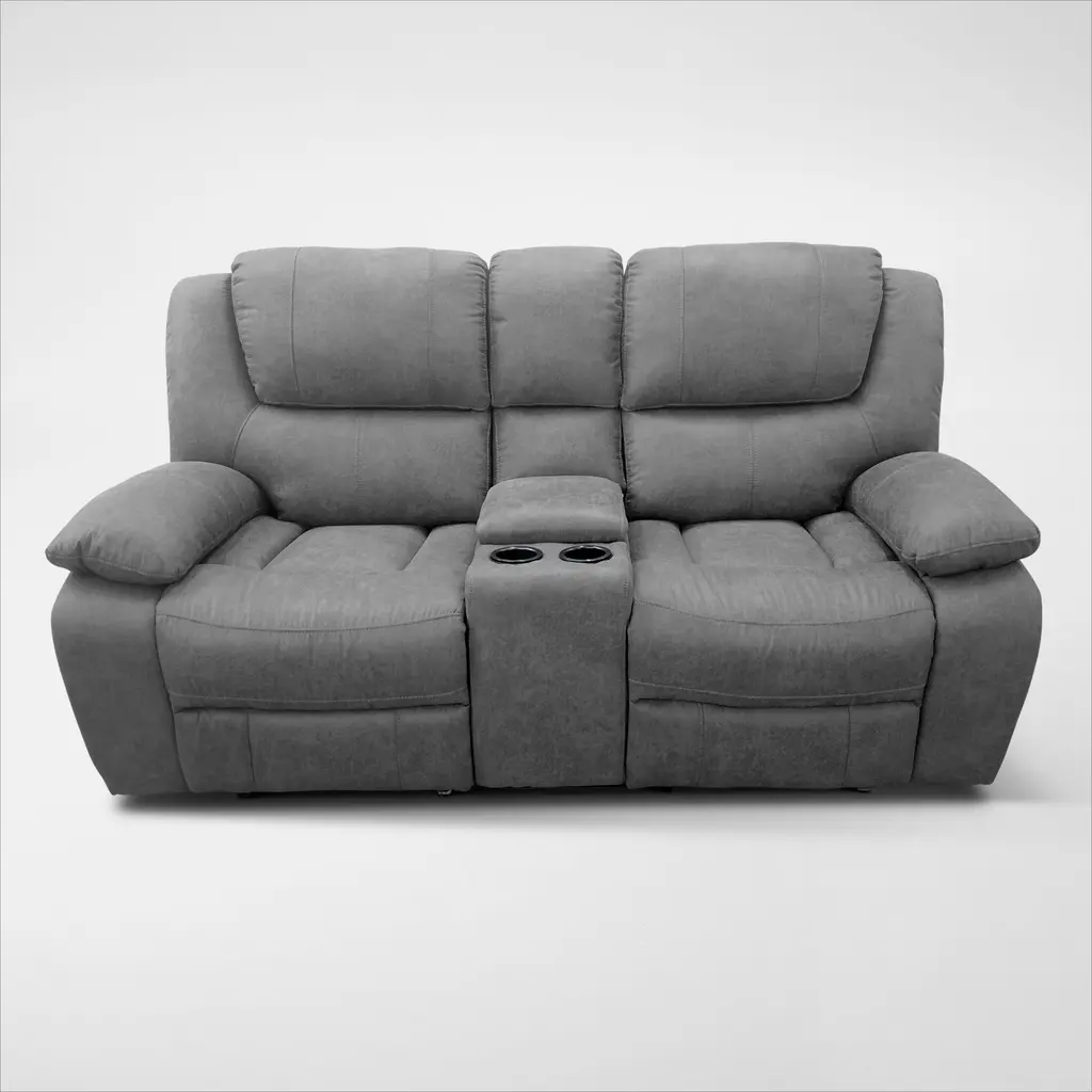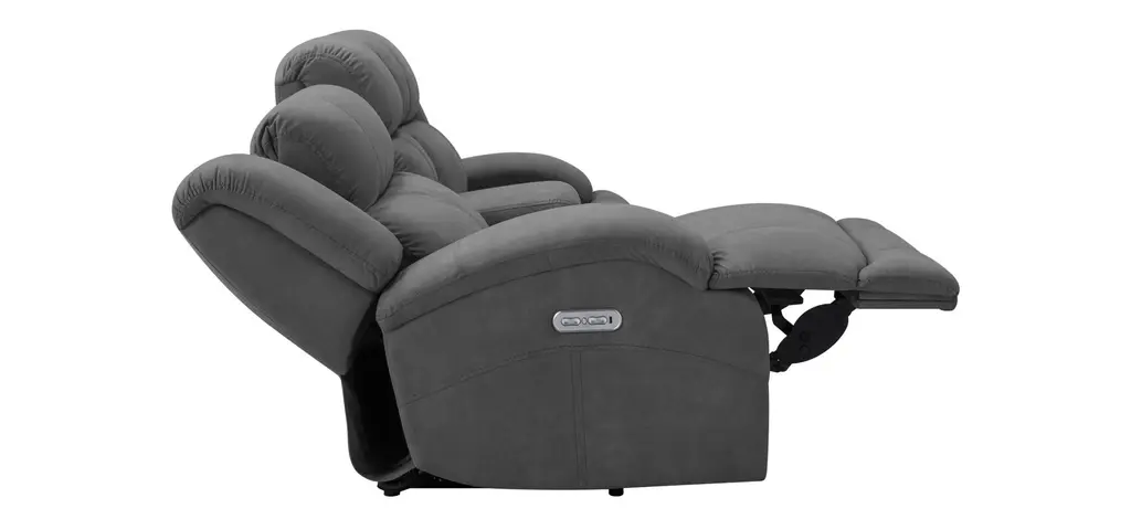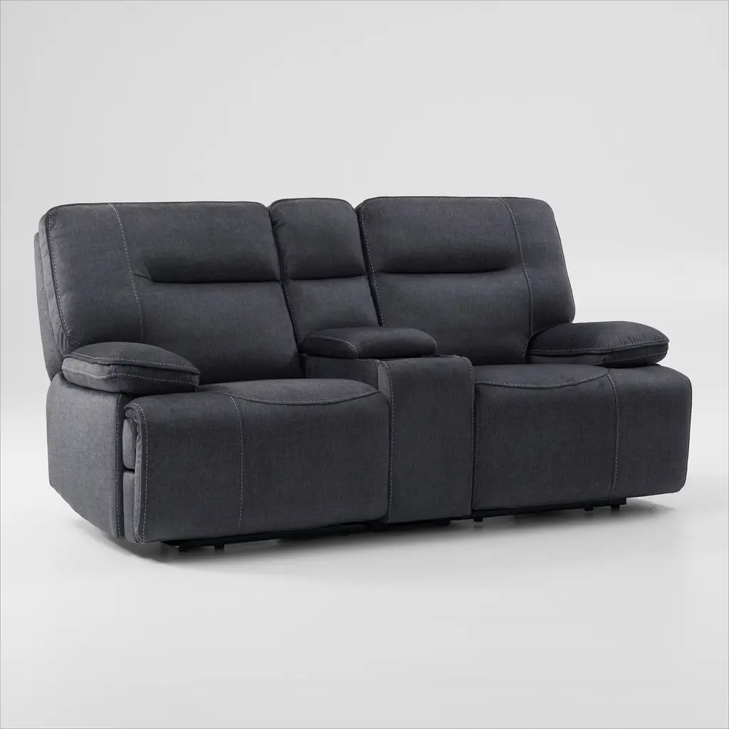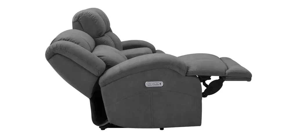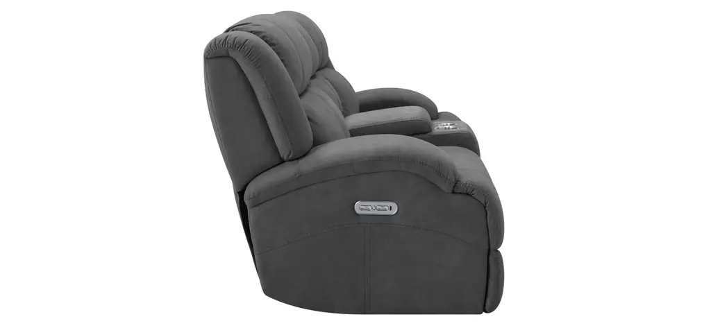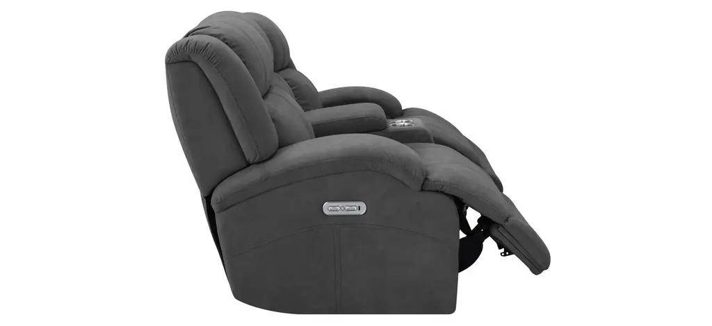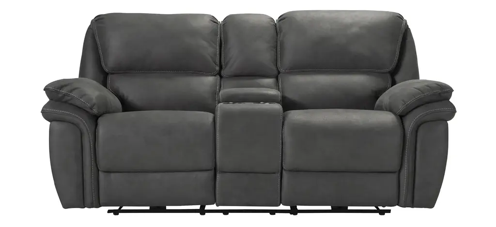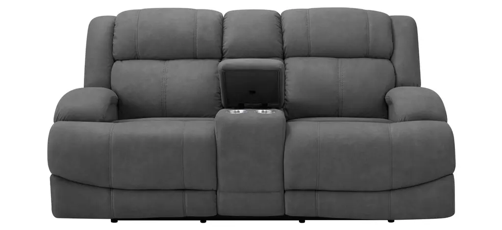 The Quincey power-reclining console loveseat offers supreme comfort and contemporary styling. Upholstered in 100% family-friendly polyester, this set combines modern style and high tech features into one inviting package.
