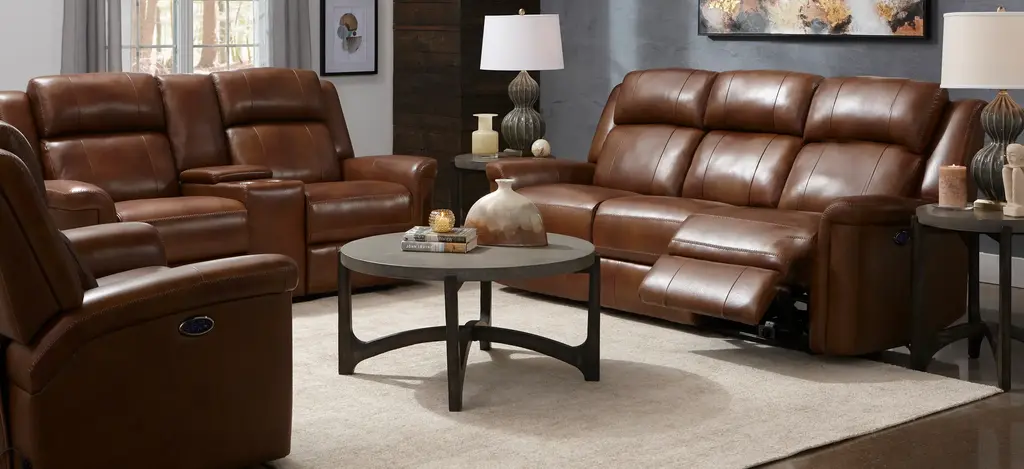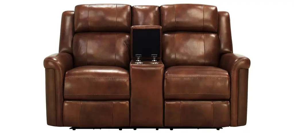 There's really no better way to enjoy a relaxing moment than on the Richfield leather power console loveseat. Its beautiful brown leather cushions and arms are so supple. Speaking of comfort, power reclining seats and headrests let you customize your position perfectly. Plus, built-in USB ports let you keep devices charged and close by.