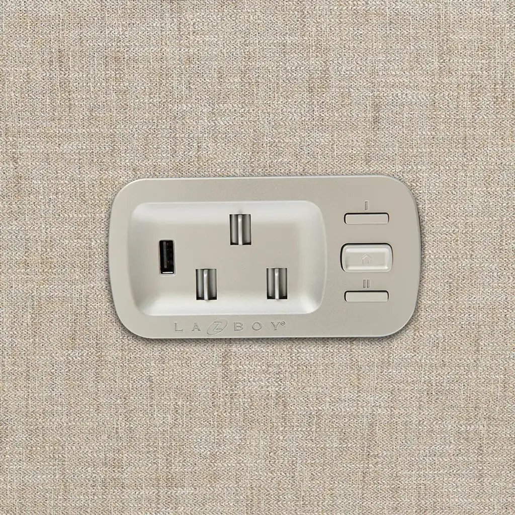 Find the most comfortably casual seat in the house! The clean box border back, chaise seat and slightly flared rolled arms add peace of mind to your living space - a personalized Robin you can be proud of. Simply use the side-mounted control panels to recline the left and right seats and raise the legrests for a wide range of relaxing positions. Built-in USB ports power your phones or tablets.