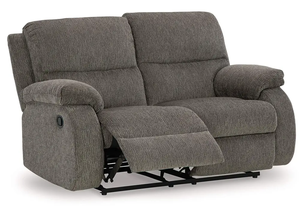 Craving a simple spot to relax and recharge? The Scranto reclining loveseat encourages you to take a break from the everyday grind. Its contemporary bustle back and versatile hue bring stylishly soft comfort to a seating area. And when you’re ready to recline, the simple pull tab motion has you kicking back in no time. Weight 155.000 lbs. (69.75kgs.)