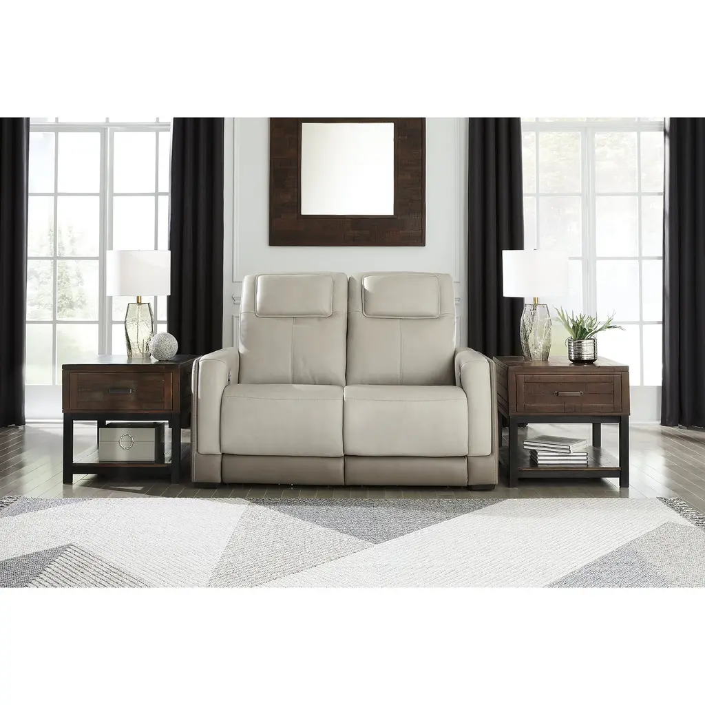 Signature Design By Ashley Battleville Almond Power Reclining Loveseat With Adjustable Headrest - 60"w X 40"d X 43"h - Almond