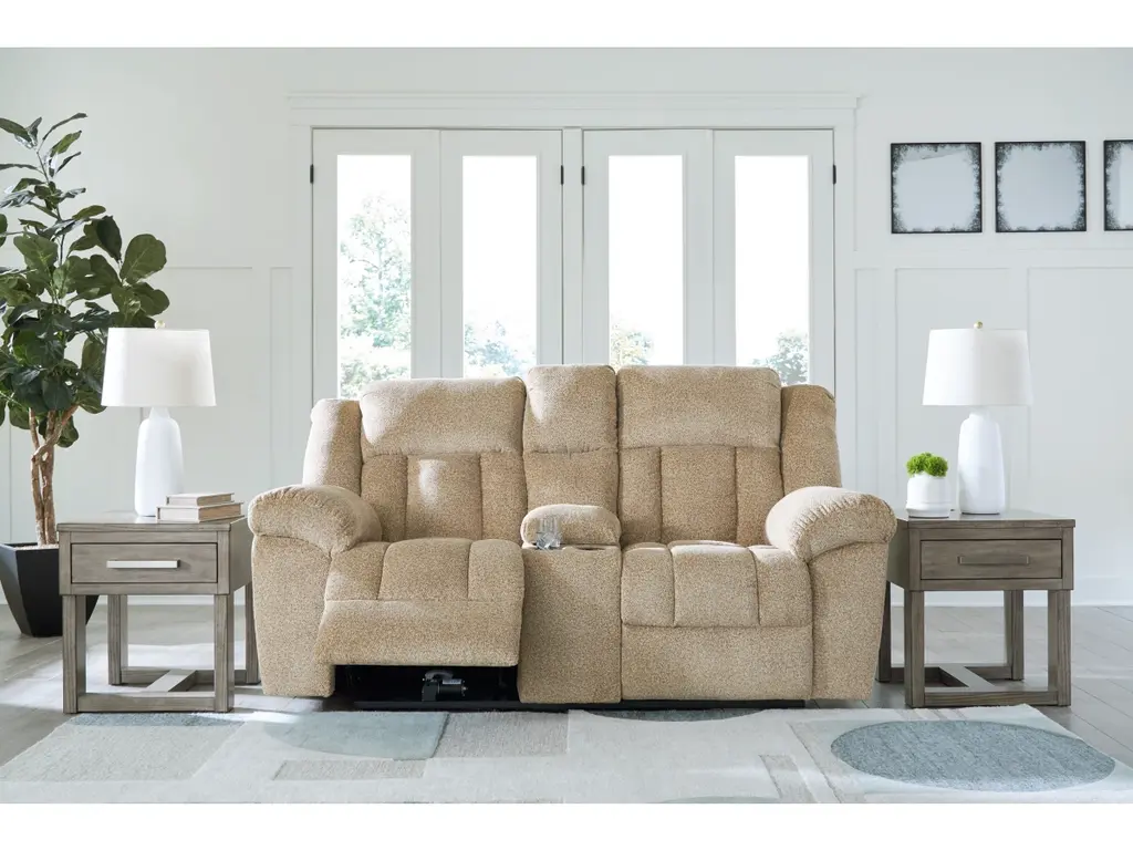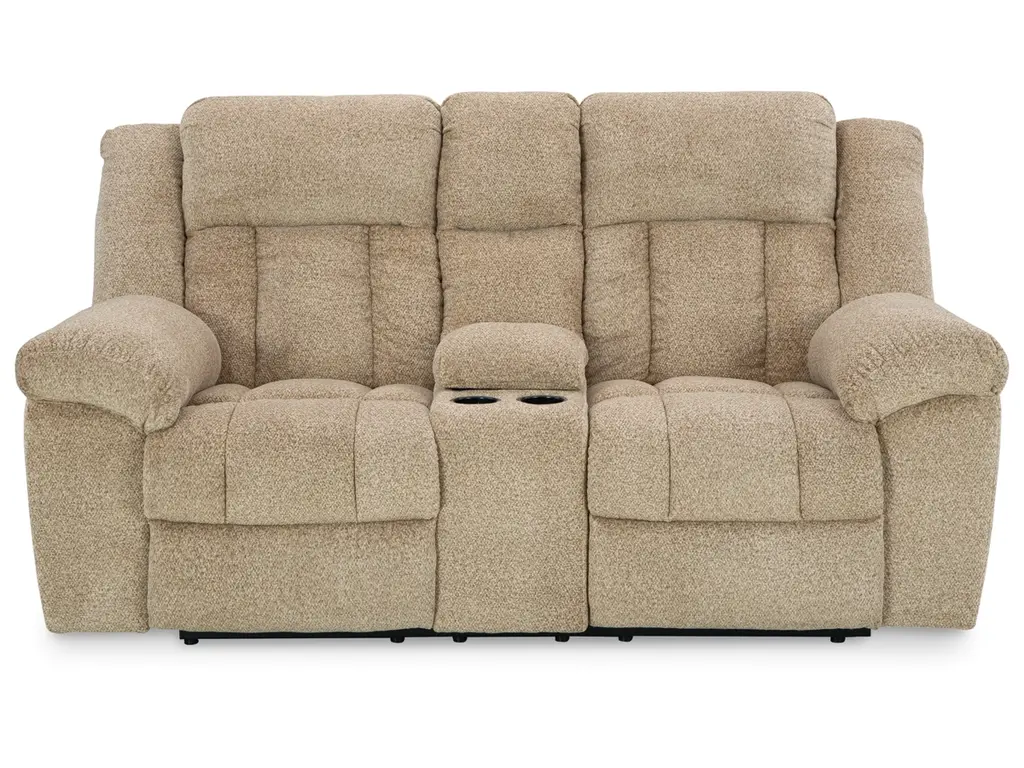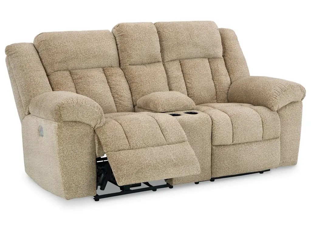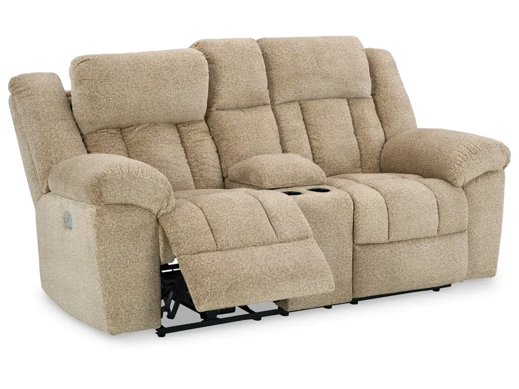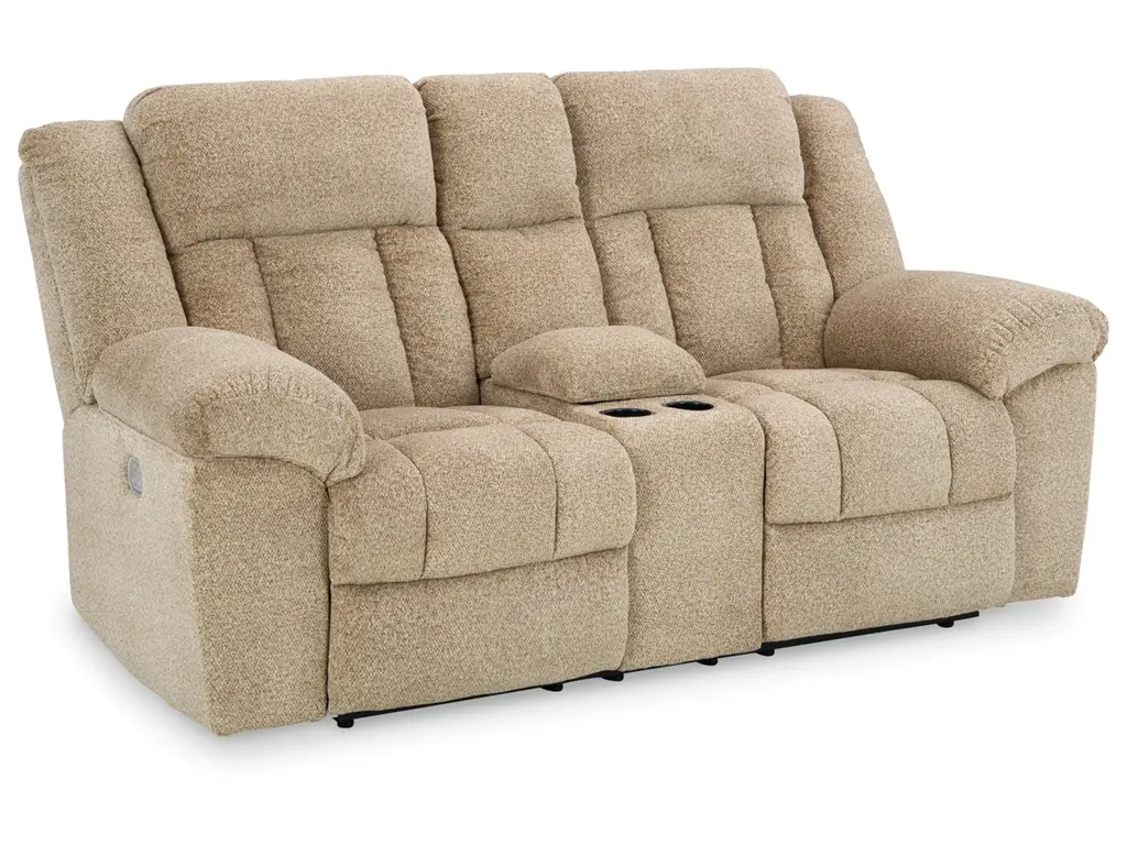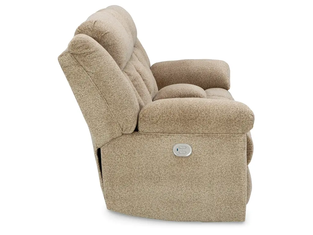 Big, bold comfort. Game time and movie nights meet their match with the Tip-Off power reclining loveseat. Made for ultimate indulgence, an extra-deep seat encourages you to sit back and bliss out. Customize the recliner and headrest to find your ideal viewing position with effortless one-touch controls. And with plush upholstery in a trendy hue, you won’t need to sacrifice style for cozy seating.