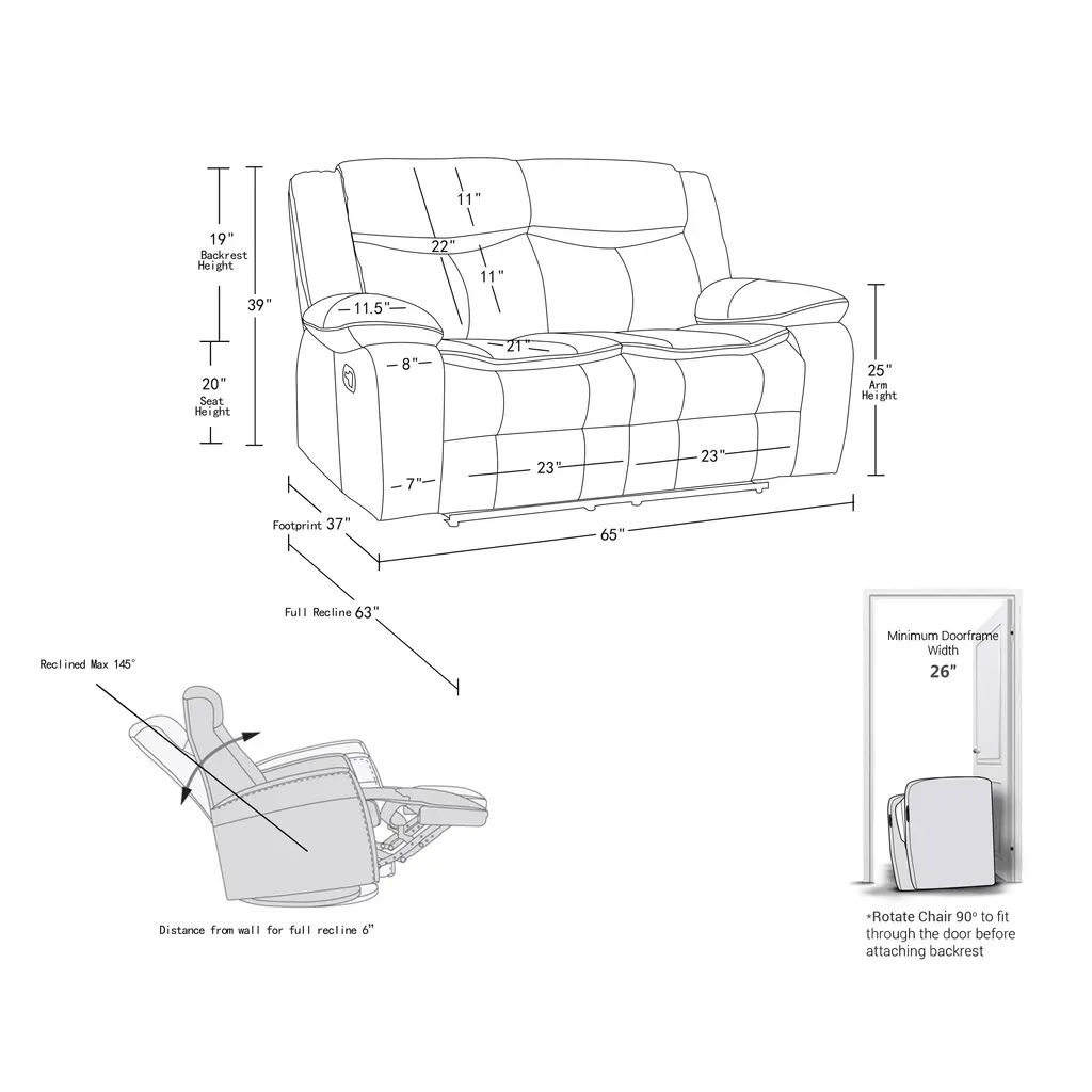 ▷Kiln-dried hardwood frame with reinforced corner blocks ▷Soft-padded frame made with polyurethane foam wrapped in polyester fiber. ▷8-gauge sinuous spring construction ▷Stainless steel base ▷Lumbar Support