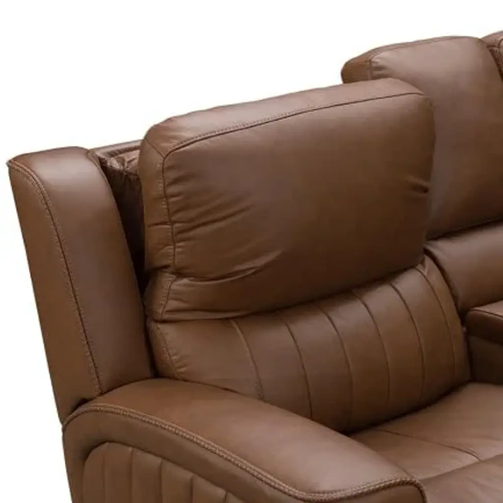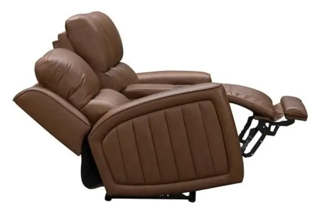 Sporty styling is found in this sophisticated modern reclining group. Features winged split pub channeled back with power headrest, power lumbar and drop-down table with 2 cup holders. Channeled pad over chaise pocketed coil seating fully supports your legs by eliminating pressure points. Large track arms with decorative whip stitching and welt details. Inside the arm power controller for easy access with USB port.