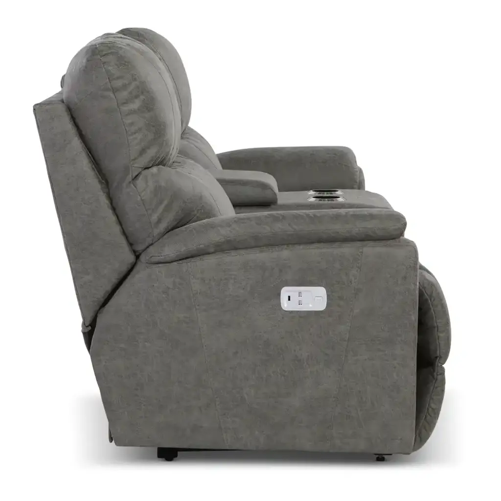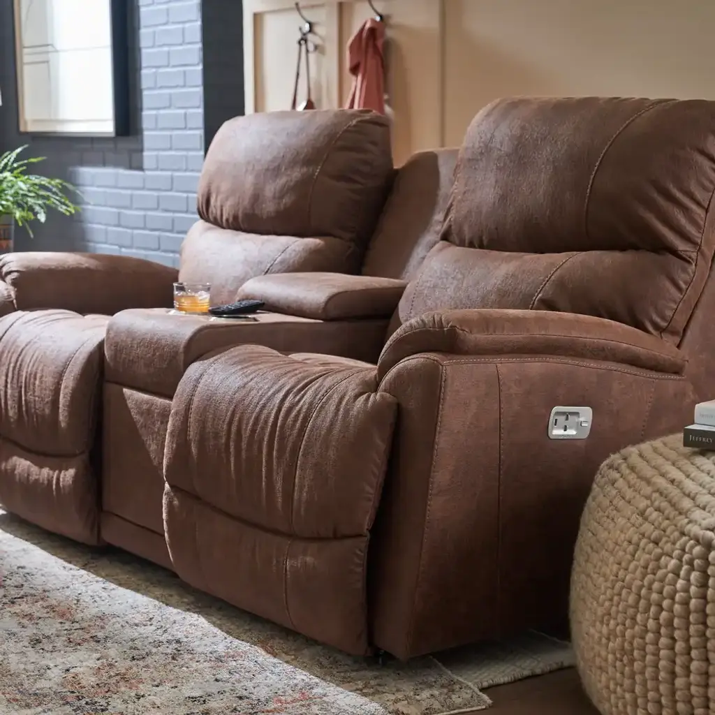 With sculpted bucket seats, dual-sided reclining power, power-tilt headrests and a convenient middle console, our Trouper loveseat is your ticket to comfort. Go from upright to fully reclined at the touch of a button as powered backs and chaise legrests move together to any reclining position, then find the optimal angle for your head and neck with our power-tilt headrest. A handy middle console provides hidden storage and a place to put your favorite beverage. Built-in USB ports on both right and left outside arms keep you connected, or unplug with our Go Cordless battery pack to enjoy Trouper’s power features without the need for an electrical outlet. Grab the popcorn, our Trouper loveseat will handle the rest.