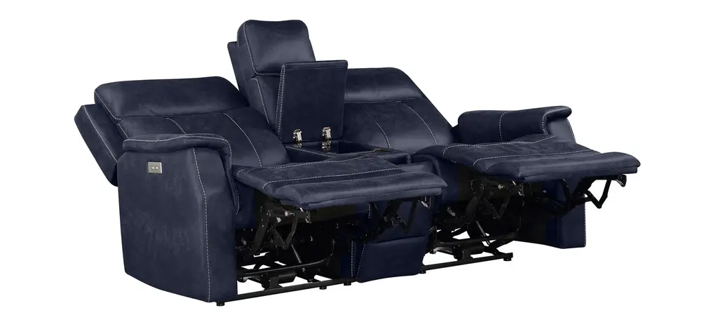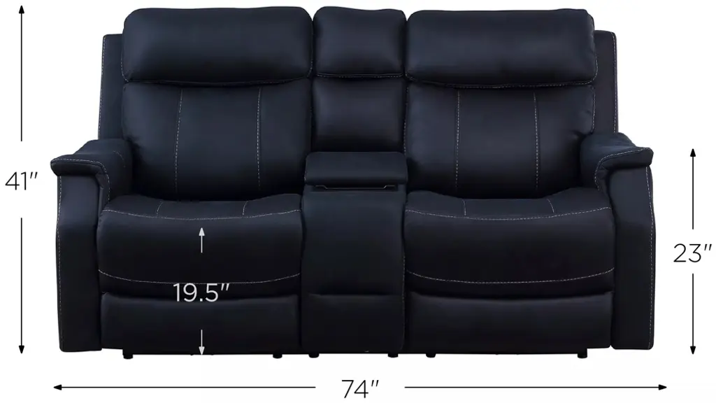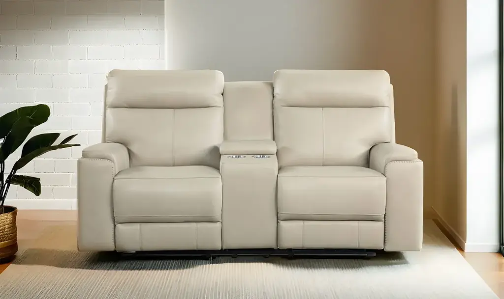 The Valencia Dual Power Reclining Loveseat with gentle shaped seats is the perfect addition to your living space. Featuring power headrest and power footrest in a clean contemporary silhouette for your ultimate comfort. The center console conceals a hidden storage area and two cup holders in the pop-open front. A control panel on each end controls the power and comes with a convenient USB charging port.