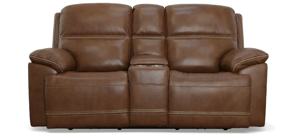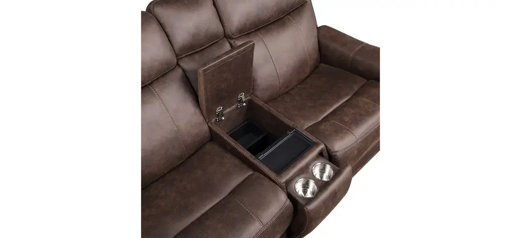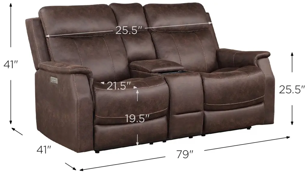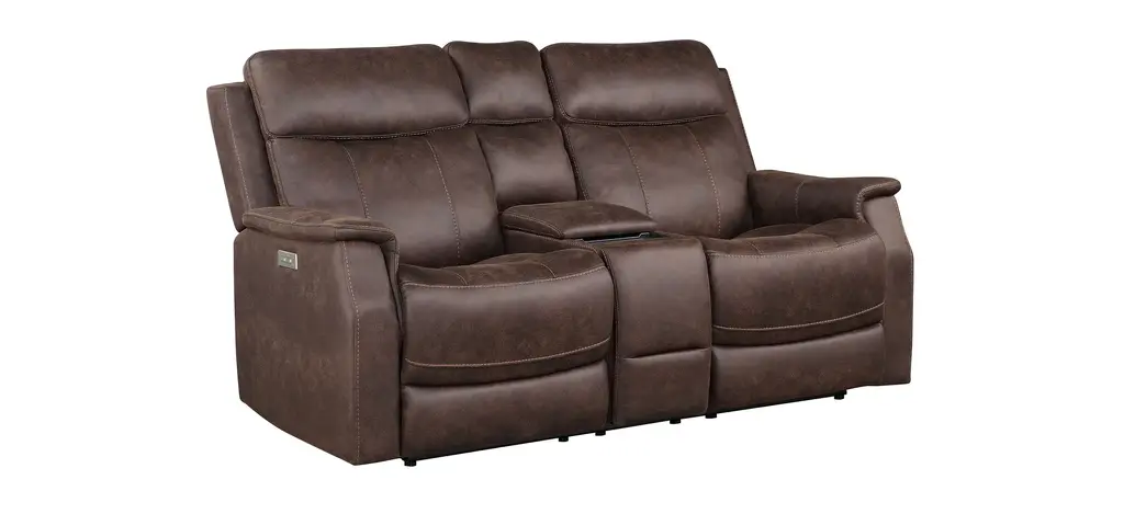 The Valencia Dual Power Reclining Loveseat with gentle shaped seats is the perfect addition to your living space. Featuring power headrest and power footrest in a clean contemporary silhouette for your ultimate comfort. The center console conceals a hidden storage area and two cup holders in the pop-open front. A control panel on each end controls the power and comes with a convenient USB charging port.