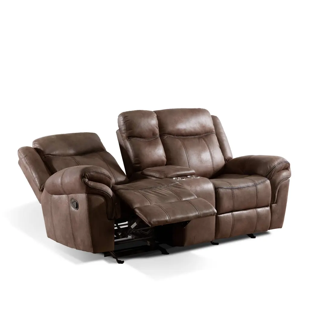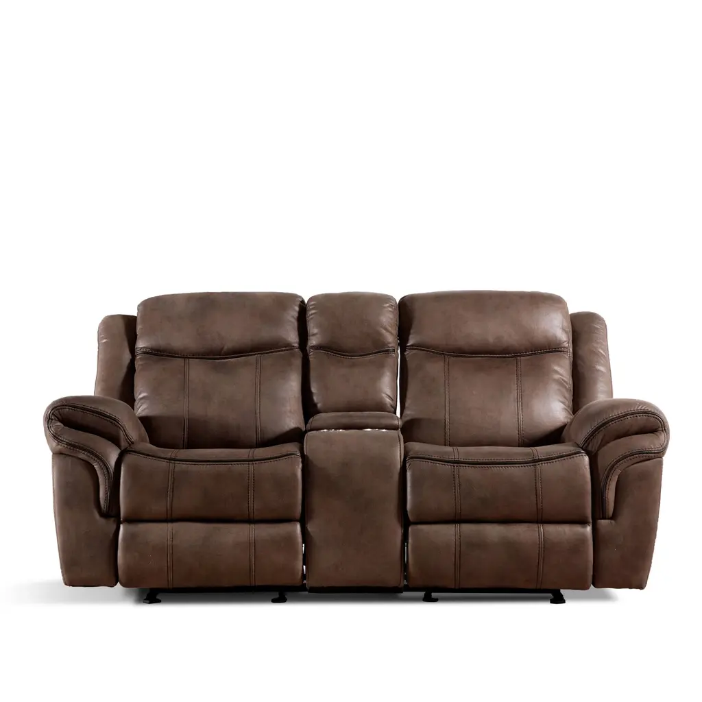 Verne Brown Manual Microsuede Glider Reclining Loveseat With Center Storage Console - Brown