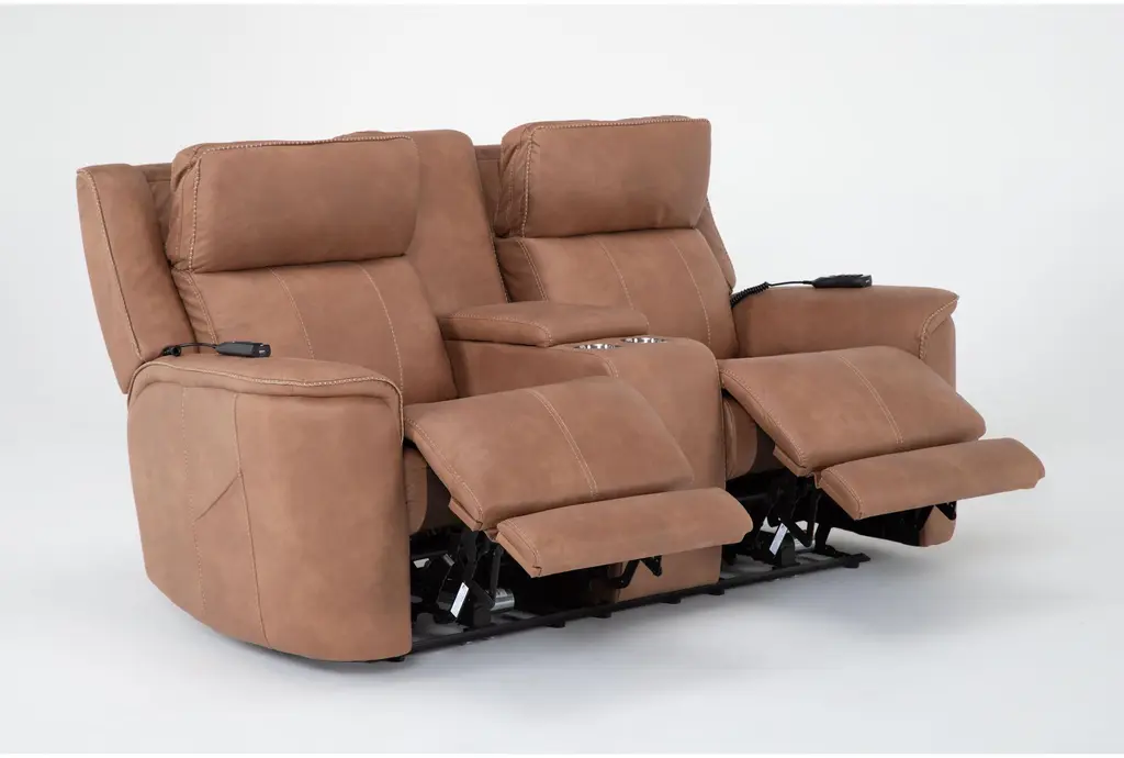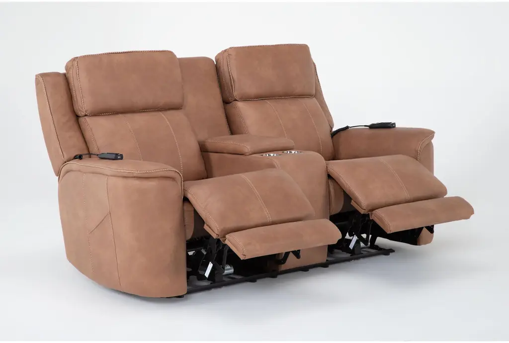 Experience unparalleled comfort with the Zachary Saddle Brown 77" Power Zero Gravity Reclining Console Loveseat. Featuring power adjustable headrest, heat massage, and convenient USB ports, this loveseat is designed to provide ultimate relaxation. Perfect for your living room, this piece combines style and functionality with cupholders for added convenience.