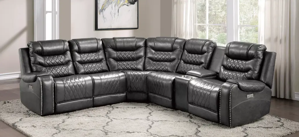 The Greenway Collection will serve as a functional, stylish, and comfortable seating group for your living room. Sectional is available in power version only. Gray polished microfiber upholstery with diamond pattern stitching and nailhead-adorned arms creates the classic look of the Greenway Collection.