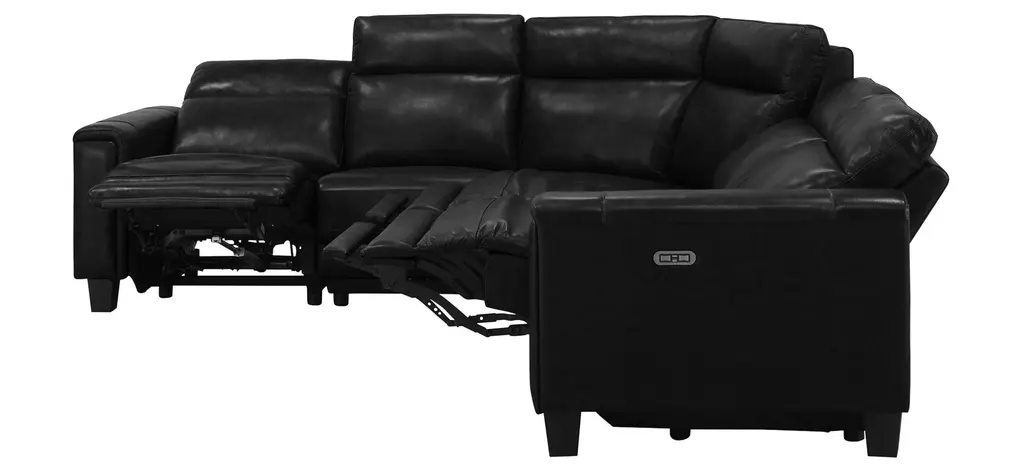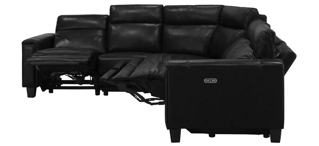 Looking for convenient, comfortable and sleek? Well, the Ace 5-pc. power sectional has it all! Top-grain leather on the cushions and arms is supple. USB ports and power-reclining seats and headrests let you customize your comfort. Get ready to relax!