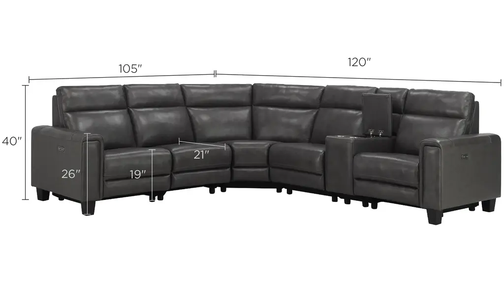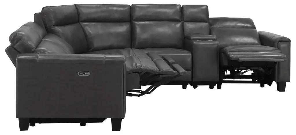 Looking for convenient, comfortable and sleek? Well, the Ace 6-pc. power sectional has it all! Top-grain leather on the cushions and arms is supple. USB ports and power-reclining seats and headrests let you customize your comfort. Get ready to relax!