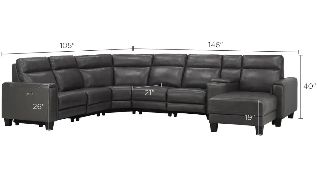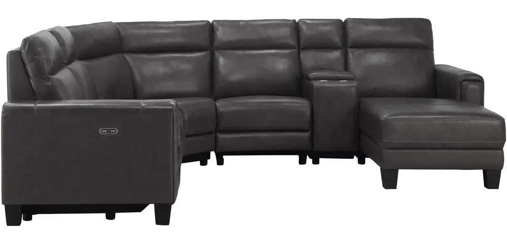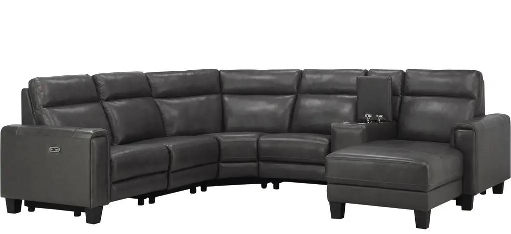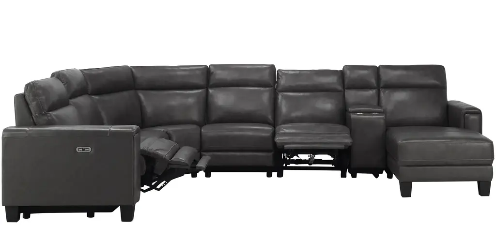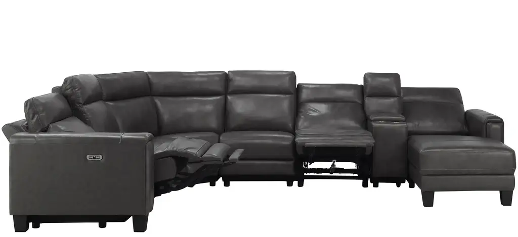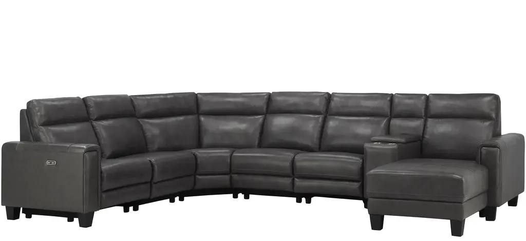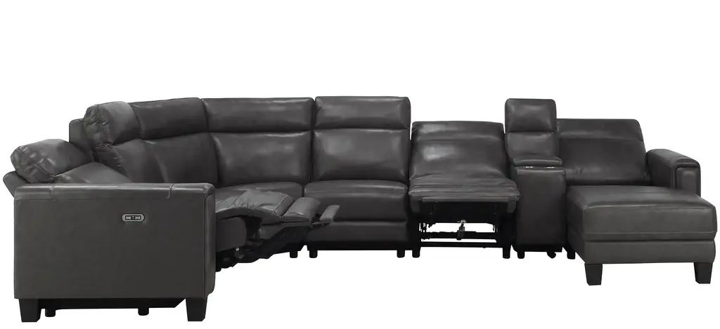 Looking for convenient, comfortable and sleek? Well, the Ace 7-pc. power sectional has it all! Top-grain leather on the cushions and arms is supple. USB ports and power-reclining seats and headrests let you customize your comfort. Get ready to relax!