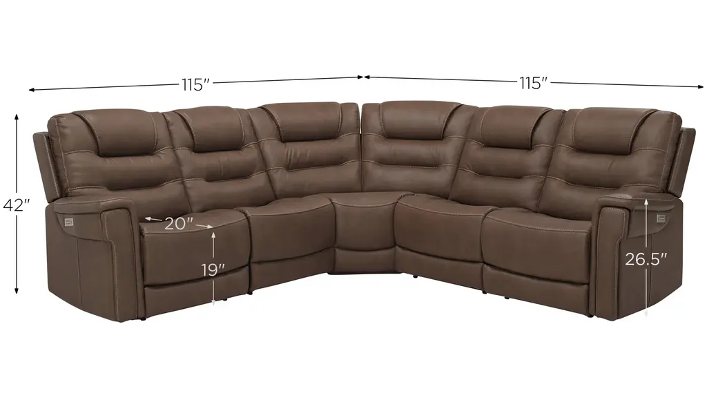 Danbury 5-Pc. Power Sectional W/ Power Headrest And Lumbar Support