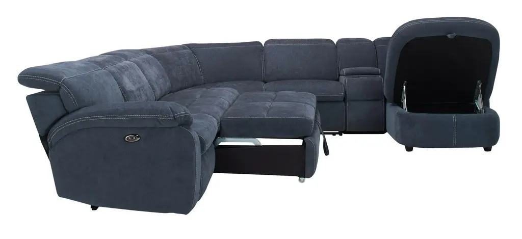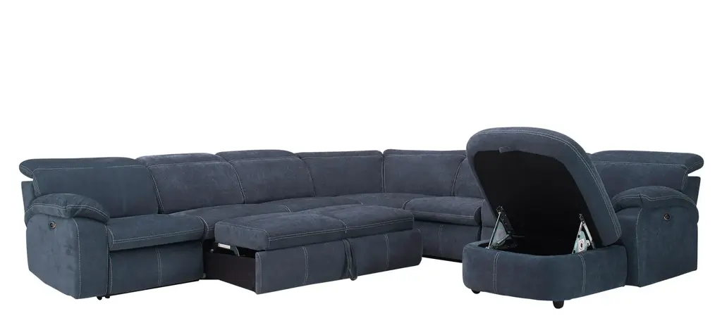 The space-saving Enbright Microfiber 6-pc. Power-Reclining Sectional with Pop-Up Sleeper is a top pick! Day or night, family or friends can comfortably relax, recline, or sleep on soft, thick cushioning. Additional storage space, removable cupholders and USB charging make this piece a must-have for the modern home.