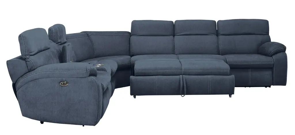 The space-saving Enbright Microfiber 6-pc. Power-Reclining Sectional with Pop-Up Sleeper is a top pick! Day or night, family or friends can comfortably relax, recline, or sleep on soft, thick cushioning. Additional storage space, removable cupholders and USB charging make this piece a must-have for the modern home.