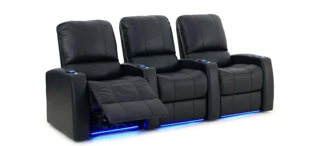 The Harkins 3-pc. leather power-reclining sectional sofa brings the home theater experience to a new level. This sofa is made of premium top-grain black leather and extends out with a chaise style foot rest. This sectional offers a layer of gel-infused memory foam for unparalleled comfort. The interior seat padding is made with high resiliency foam that is designed to maintain its form even after years of regular usage.