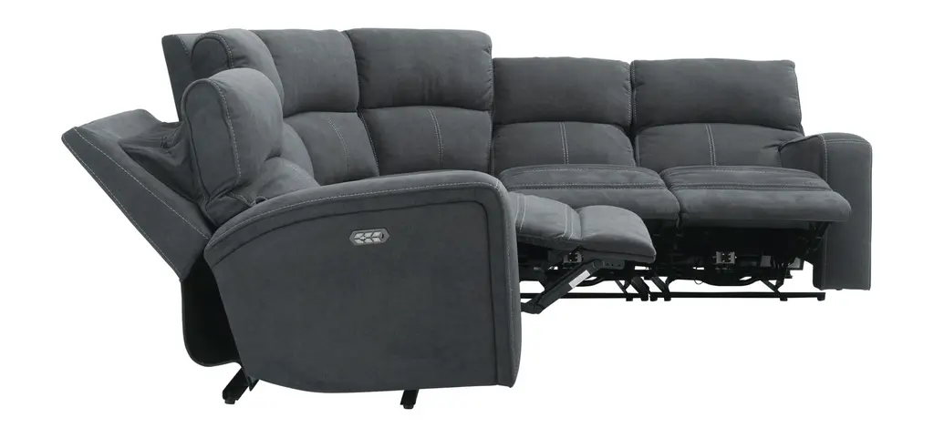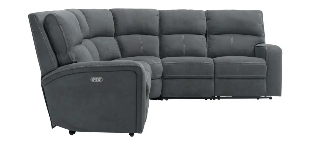 The Ian 5-pc. Power Sectional has everything you need for ultimate, customized relaxation. With a pub style back and slope track arms, it's available in on-trend charcoal upholstery. Features include a power headrest and lumbar support, a USB port and removable back.