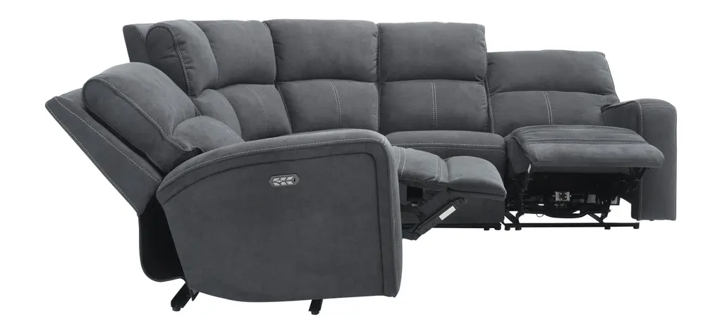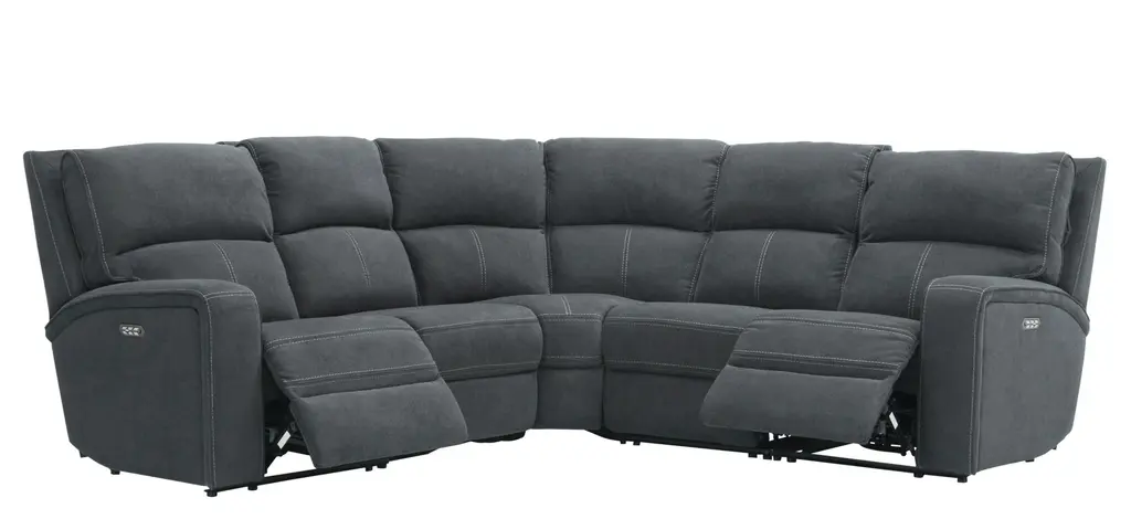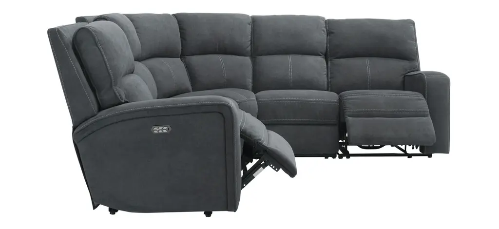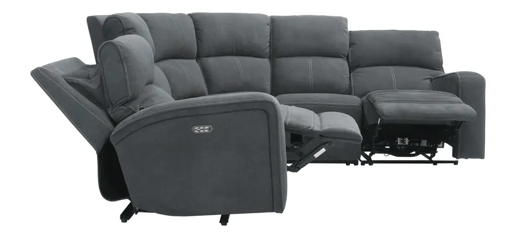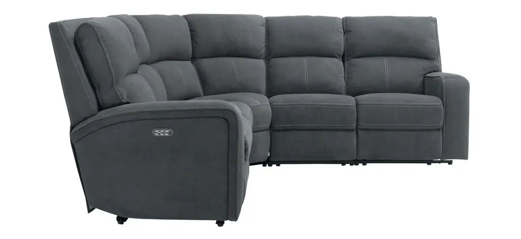 The Ian 5-pc. Power Sectional has everything you need for ultimate, customized relaxation. With a pub style back and slope track arms, it's available in on-trend charcoal upholstery. Features include a power headrest and lumbar support, a USB port and removable back.