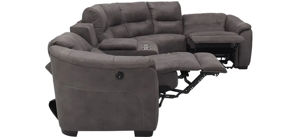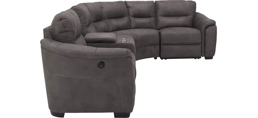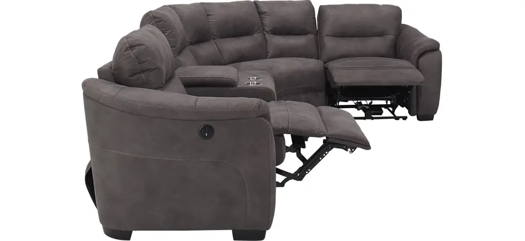 Leather-look seating with easy-care fabric-the Rockland Microfiber 5-pc. Power Sectional has the patina of distressed leather but is actually upholstered in soft polished microfiber. Power reclining offers multiple positions and the chaise style provides a continuous seating surface for outstanding support. Drinks won't spill with the console's 2-cup holder, and flip-top storage adds convenience. The Rockland Microfiber 5-pc. Power Sectional is everything you need for relaxed living.