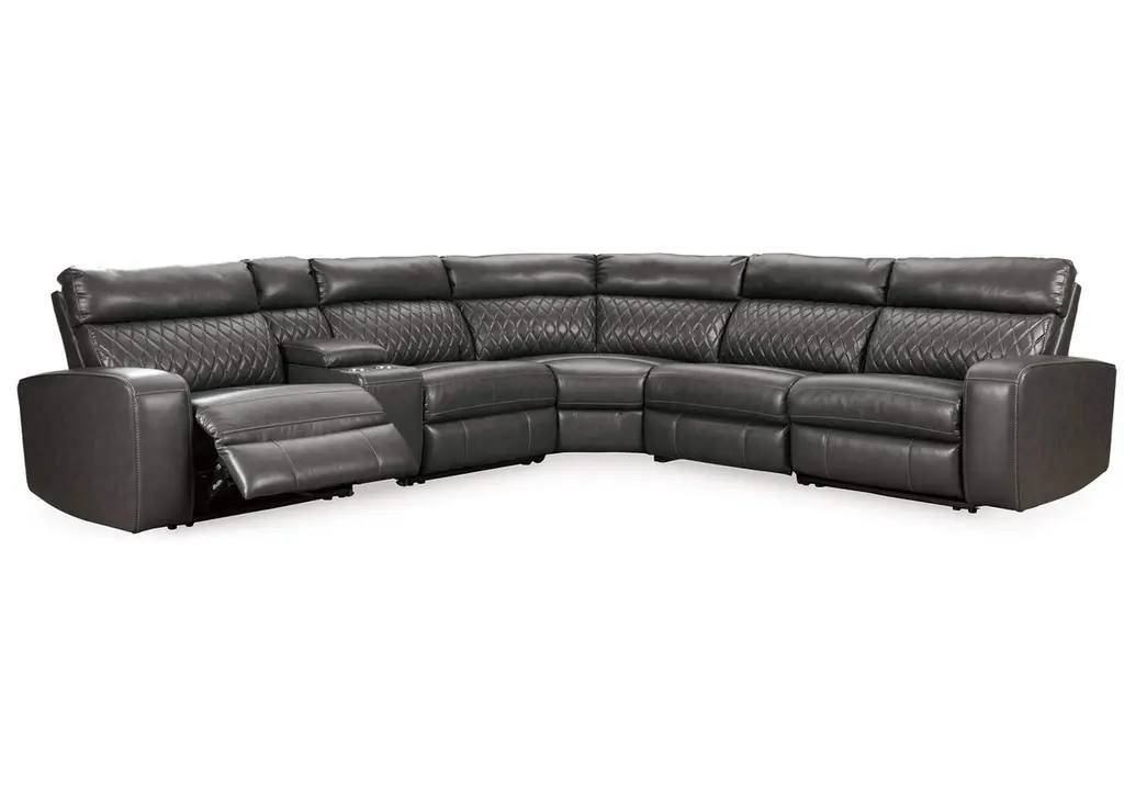 Leather-look seating with easy-care fabric-the Rockland Microfiber 6-pc. Power Sectional sofa has the patina of distressed leather but is actually upholstered in soft polished microfiber. Power reclining offers multiple positions and the chaise style provides a continuous seating surface for outstanding support. Drinks won't spill with the console's 2-cup holder, and flip-top storage adds convenience. The Rockland Microfiber 6-pc. Power Sectional Sofa is everything you need for relaxed living.