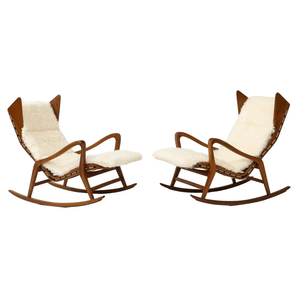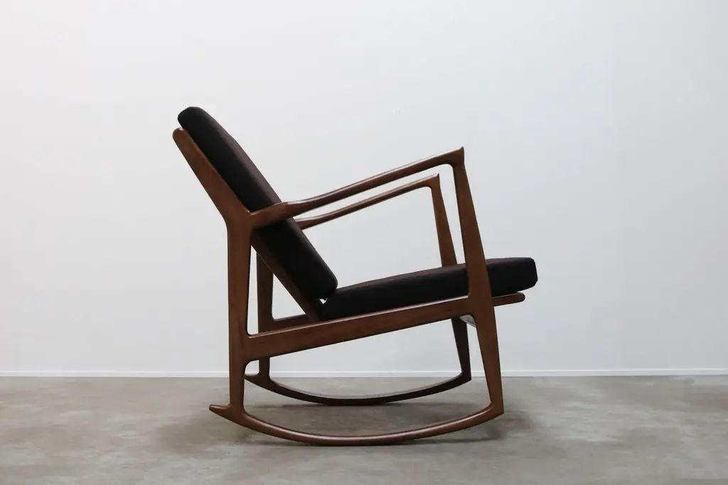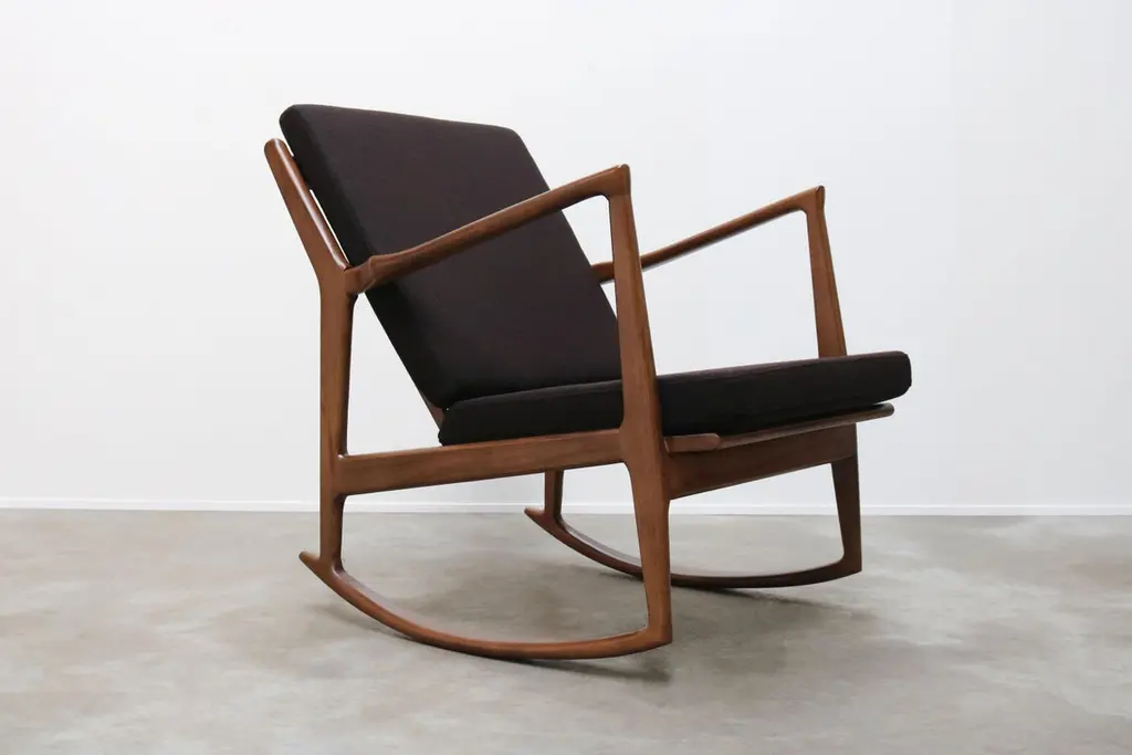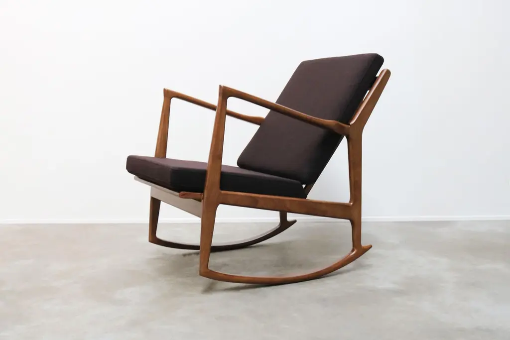 1 Of 2 Danish Design Style 1950 New Modern Rocking Chair Walnut Brown Cashmere