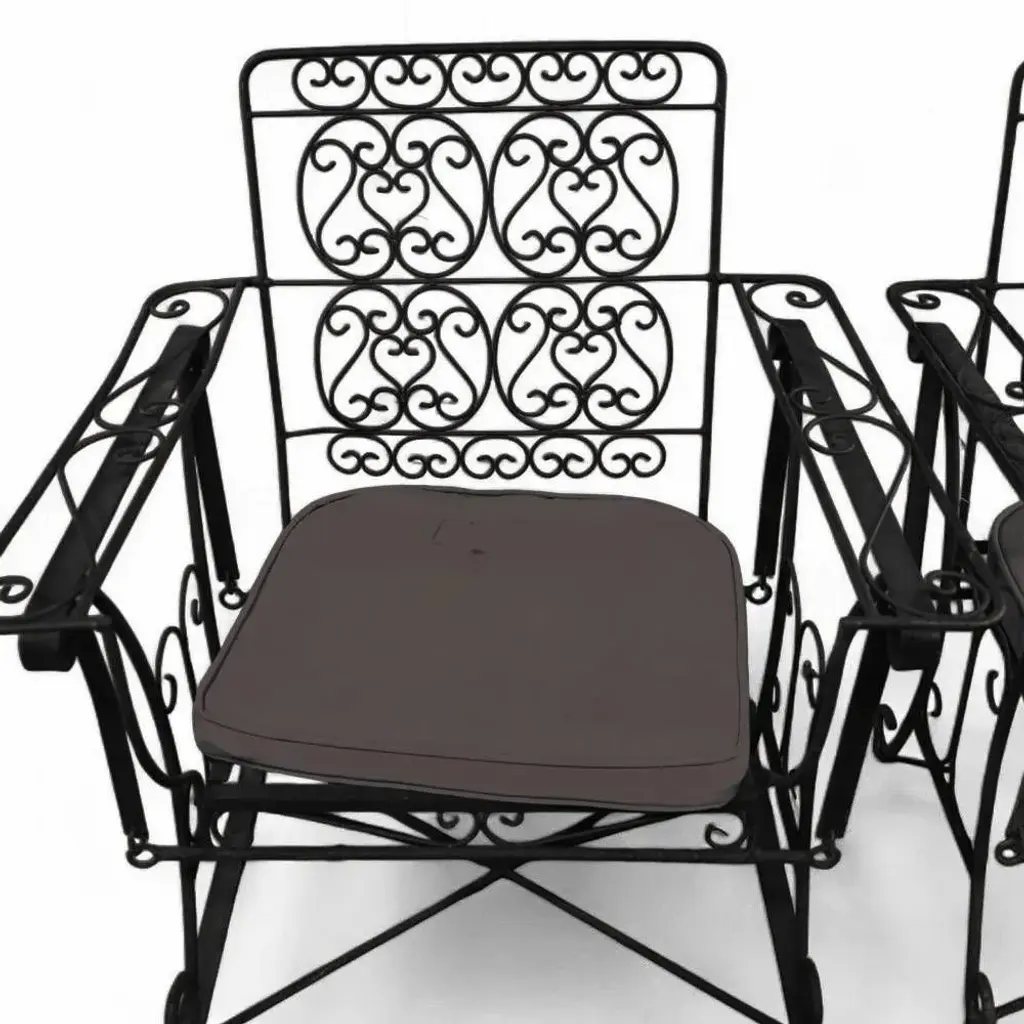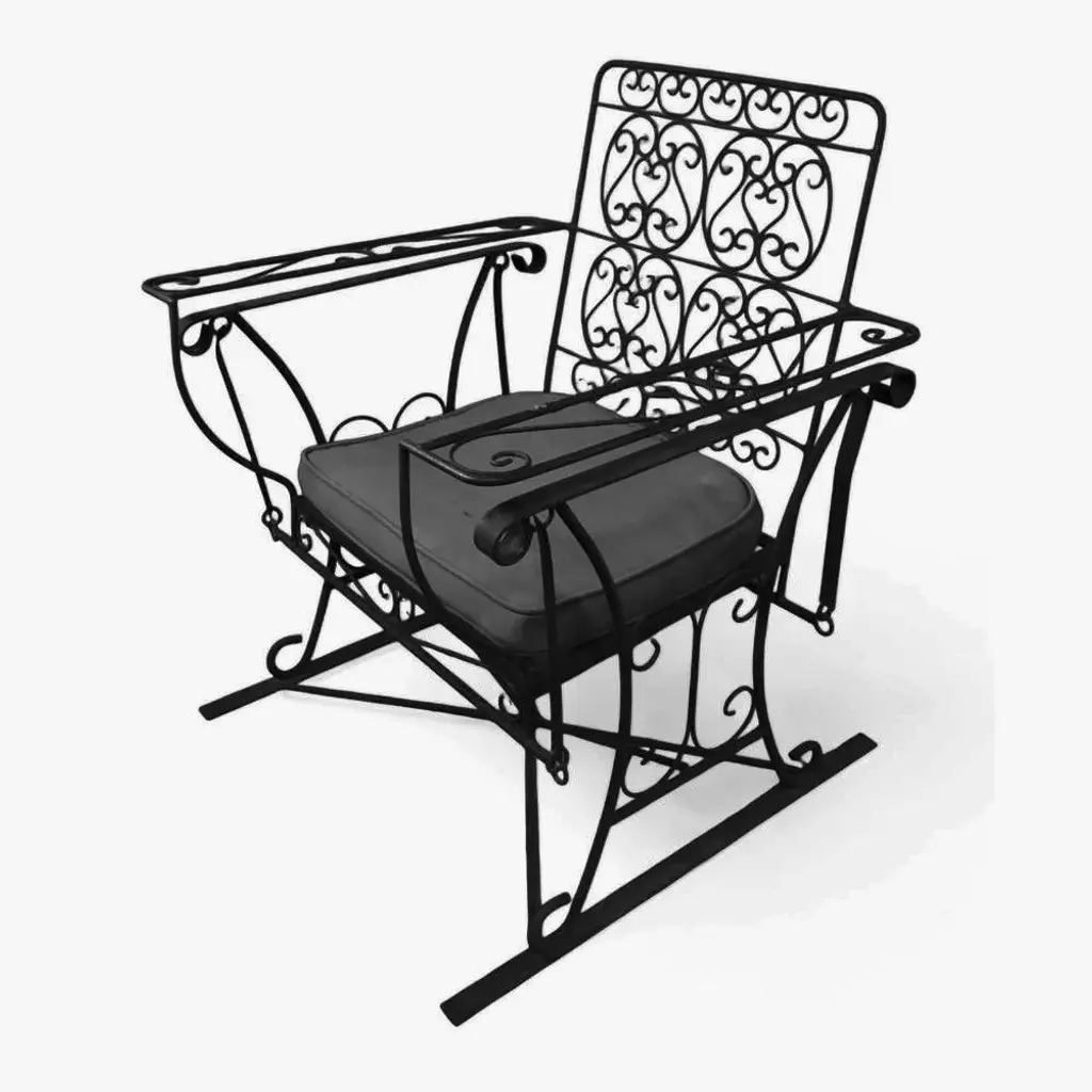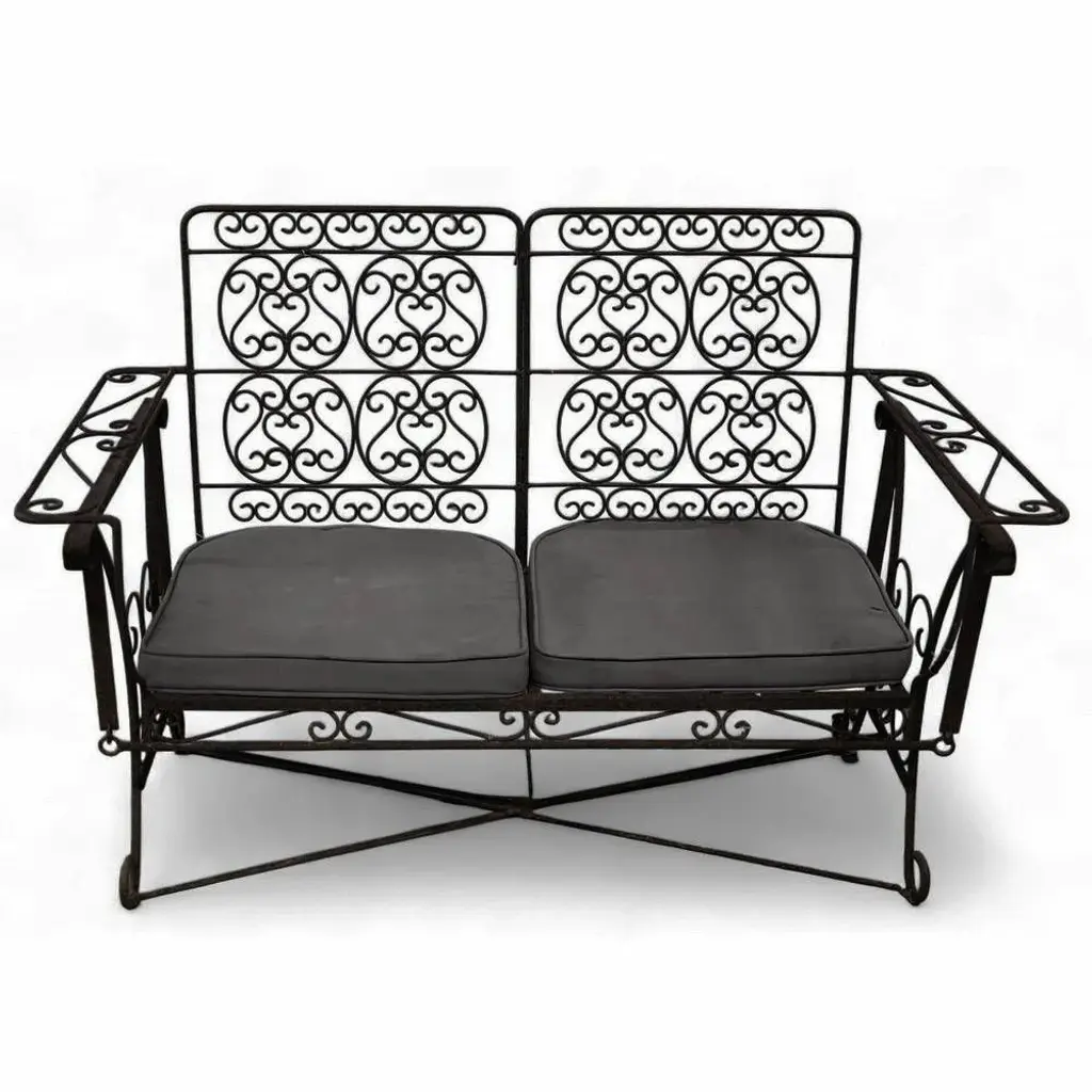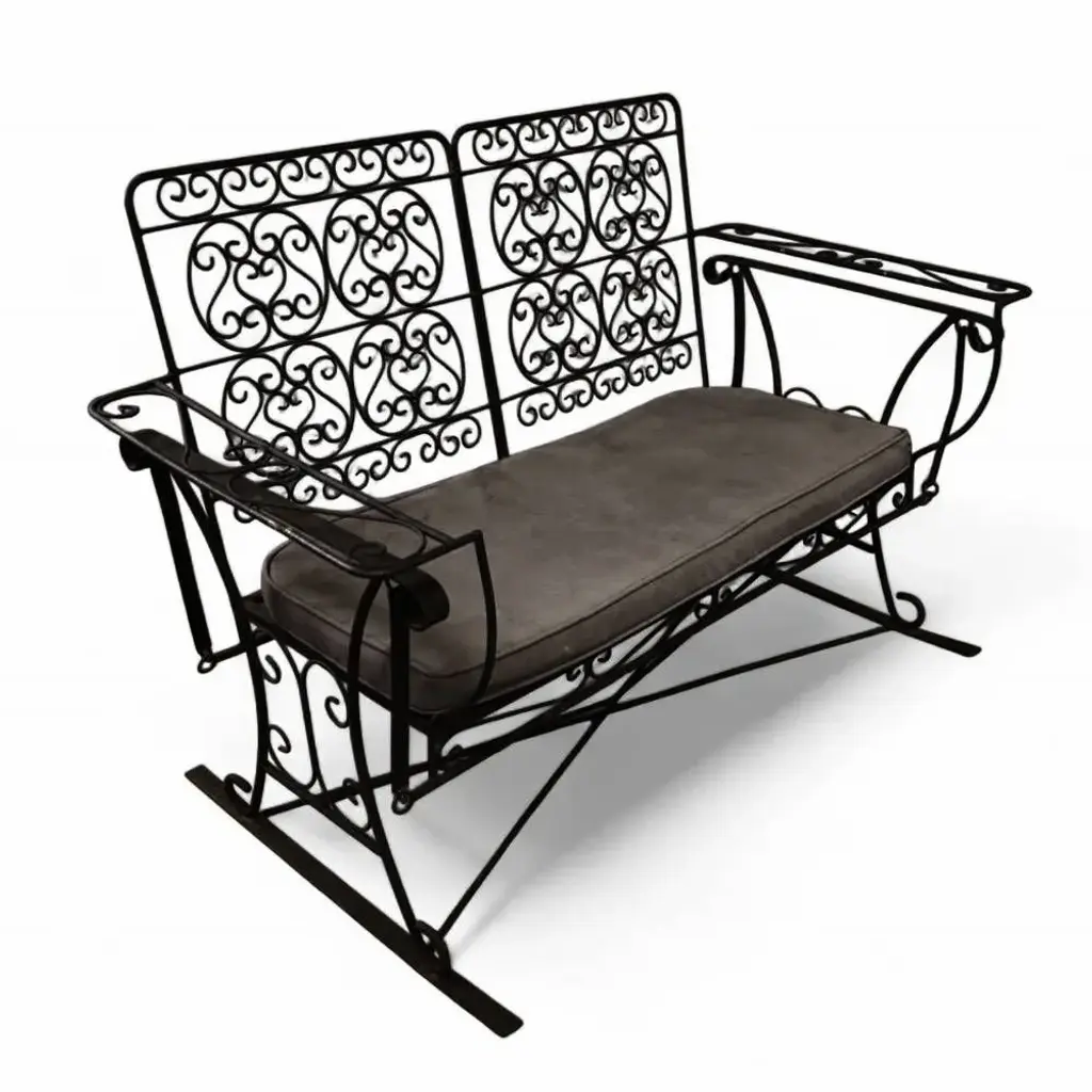 1950s Wrought Iron Slider Rocking Chair & Settee With Scrolling Arms