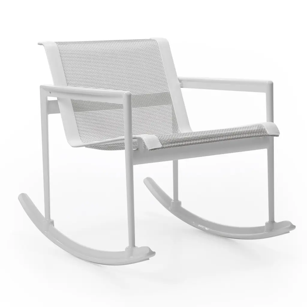 Seeking furniture that could stand up to the salty environment of her seaside home, Florence Knoll called Richard Schultz up to the task. His answer: The 1966 Collection, a refined series that brings the clean lines and balanced proportions of indoor modern furniture to outdoor living. This outdoor rocker is made of sturdy aluminum with a weather-resistant finish, plus a mesh seat for breathability.
