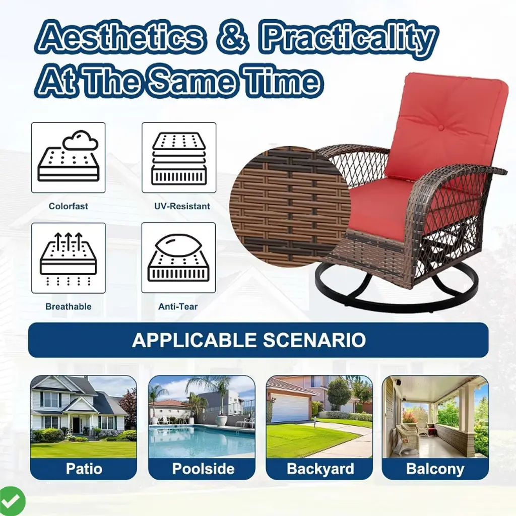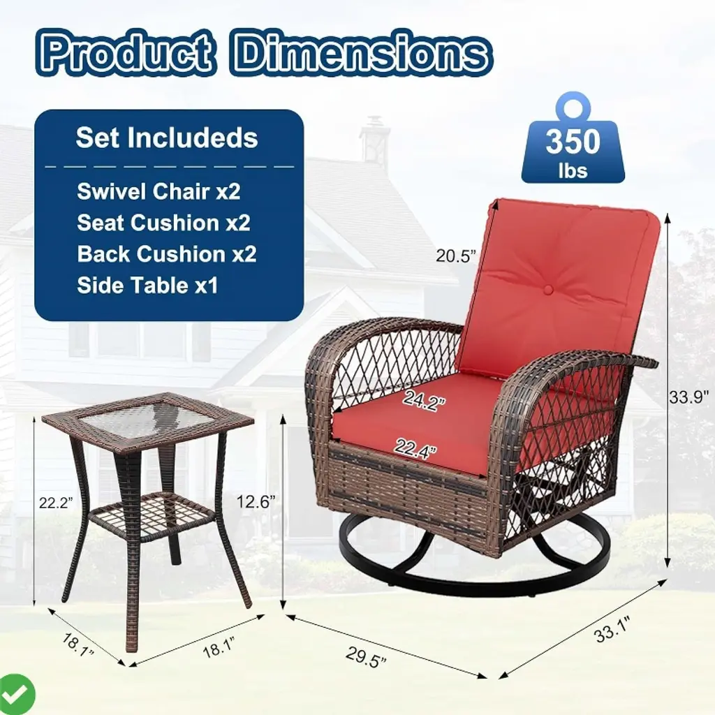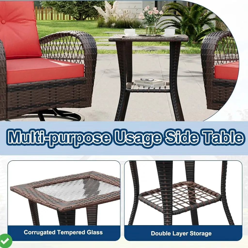 3 piece outdoor patio furniture set includes a matching tempered-glass side table to complement your patio nook, and provides an easy-to-clean surface. Besides, this side table has a extra storage space for added convenience and versatility,2 Tier Side Table.