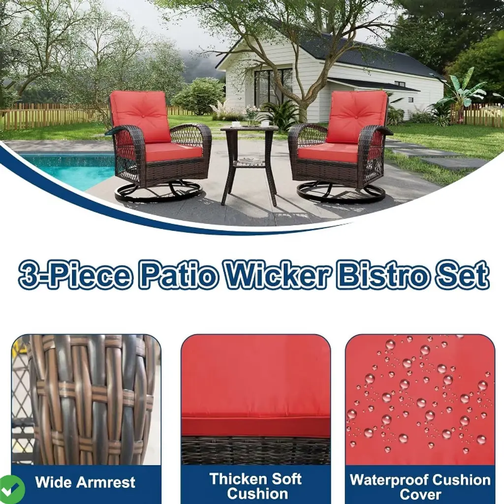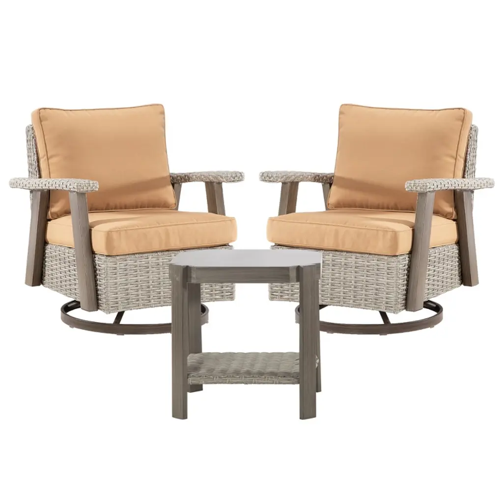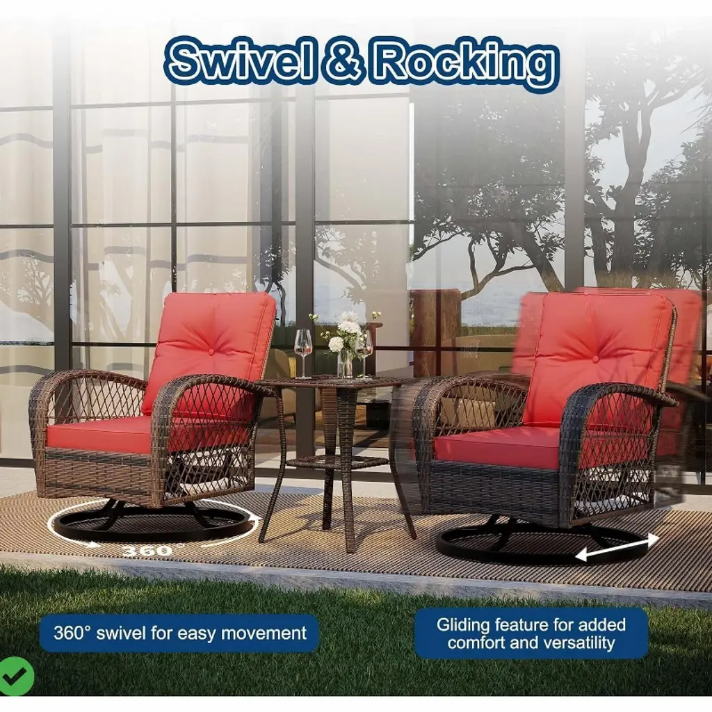 3-piece Swivel Rocking Patio Chairs Set W/ 2 360-degree Swivel Rocking Chairs Outdoor Wicker Patio Bistro Set