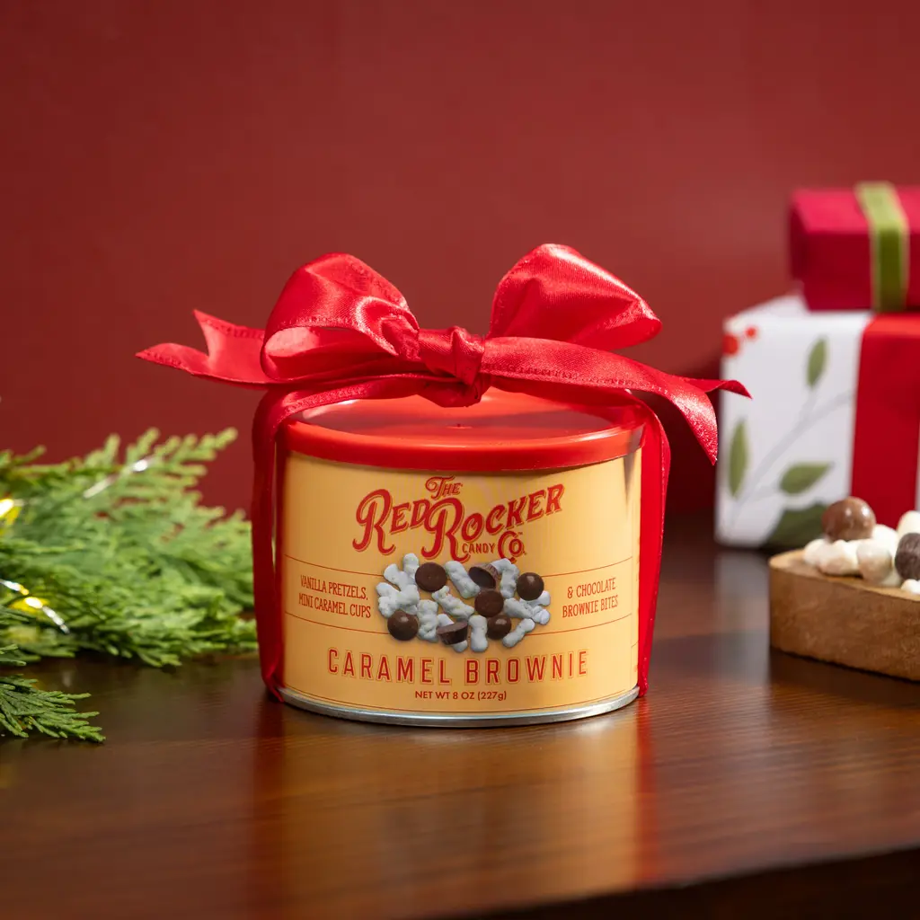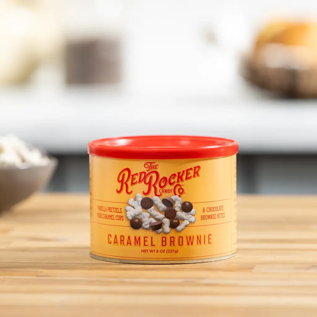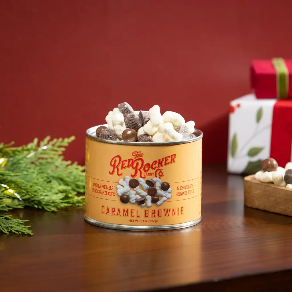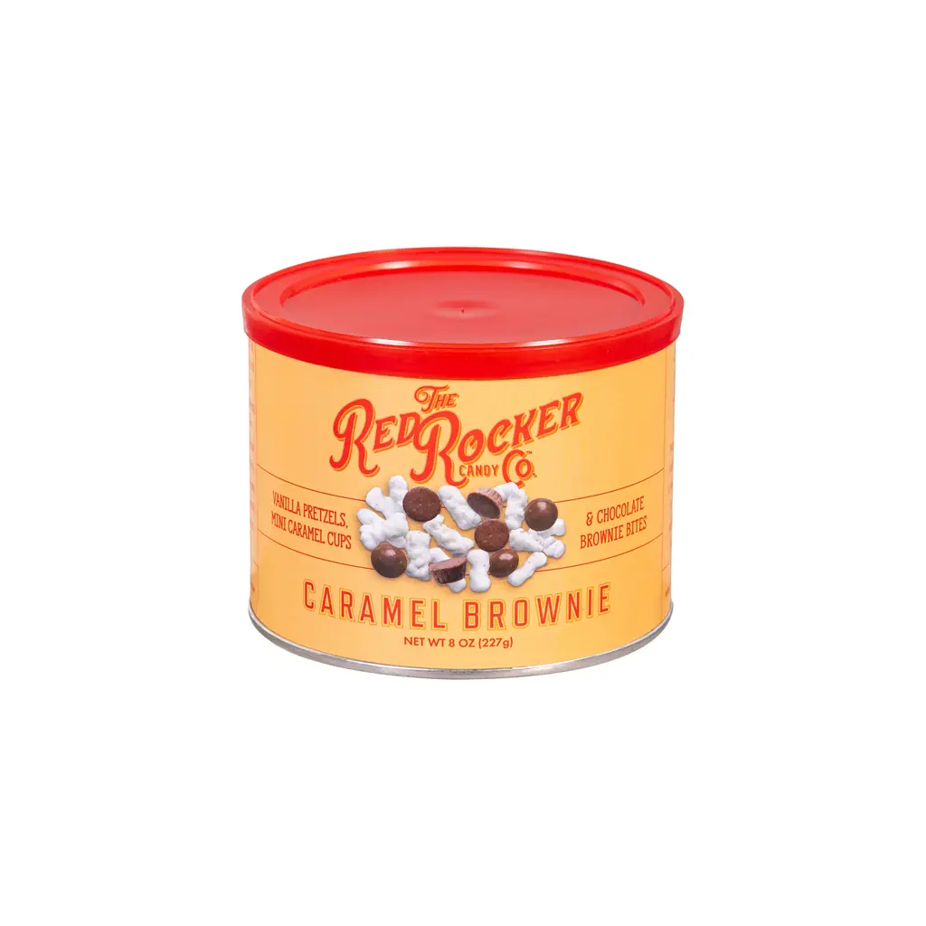 Satisfy your sweet tooth with the rich, indulgent flavor of Red Rocker Candy Co. Caramel Brownie Snack Mix. This 8 oz. tin is loaded with a decadent medley of vanilla-coated pretzels, mini caramel cups, and chewy chocolate brownie bites—perfectly blended for that gooey, chocolatey, caramel-crunch combo you crave. Whether you’re gifting it, sharing it, or keeping it all to yourself (we won’t tell), this snack mix is a dessert lover’s dream come true.