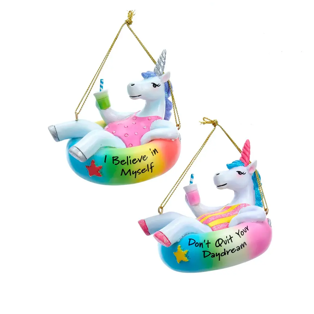 Is there anything better than unicorns rainbows and summer? Mix all those things together and get this awesome unicorn rainbow rocker pool float. Designed for up to 2 riders you can ride by yourself or ride with your kid and have an awesome time in the water. The sturdy handle grip handles will ease anyone's fear of water and is this is the perfect addition for your pool this summer! Product Features: Inflatable rainbow unicorn rocker float White unicorn with rainbow hair gold horn and star accents Sides of the float have a striped rainbow design Inflatable fits 1-2 riders Includes wide side bolster chambers and two white sturdy handles for stability Contains a PVC patch repair kit Recommended for the ages of 4 years and older Dimensions: 48"H x 36"W x 86"D (inflated) Material(s): vinyl Note: Ships flat and does not come inflated Note: This is not a lifesaving device - always keep children in sight within quick and easy reach when they are in the water with you