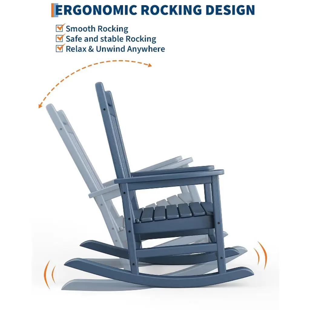 Adirondack Outdoor Patio Rocking Chair, All Weather Hdpe Glider Rocker Chair With High Backrest For Porch Balcony Lawn, 380 Lbs Capacity, Blue