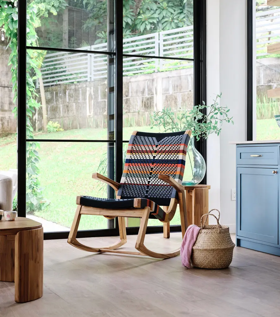 The Amador is our most popular rocker that combines comfort with a rich textured woven cord back and seat inspired by Mid-Century Danish Cord and Japandi designs.