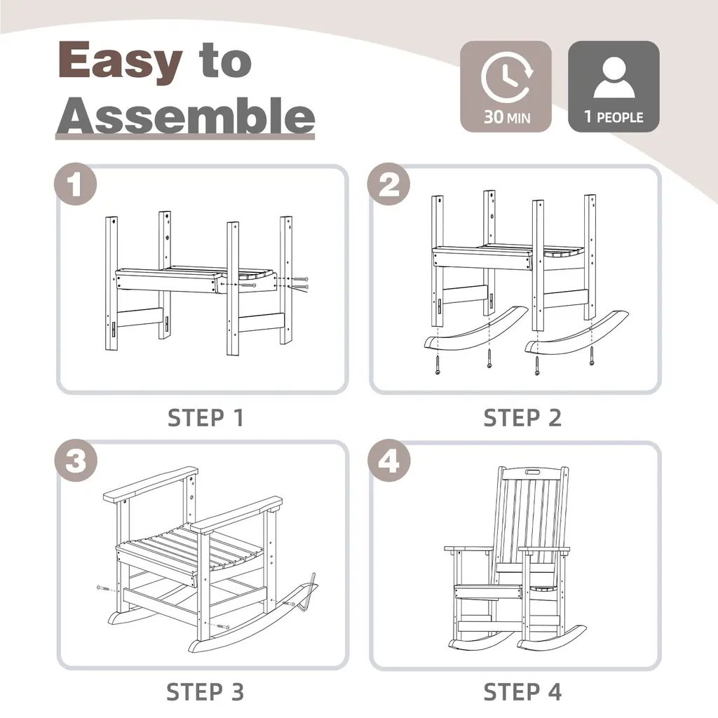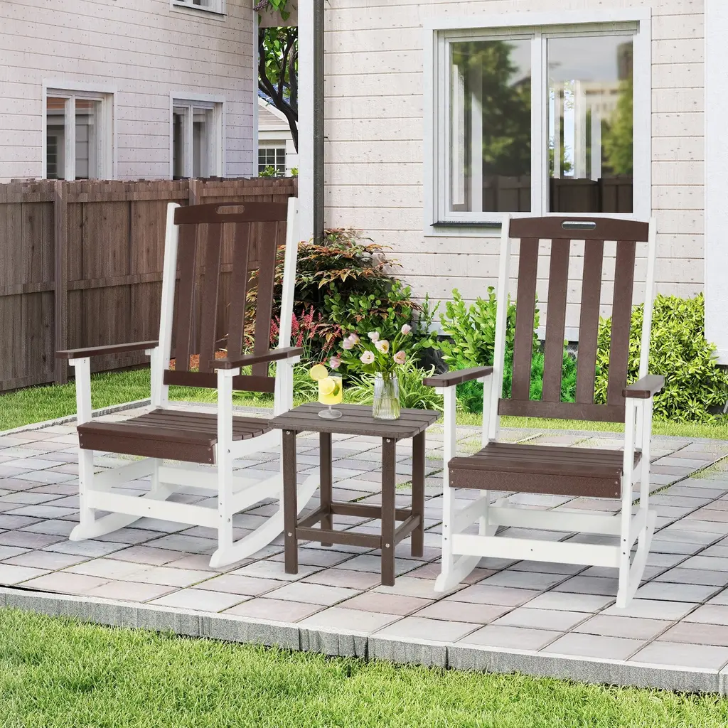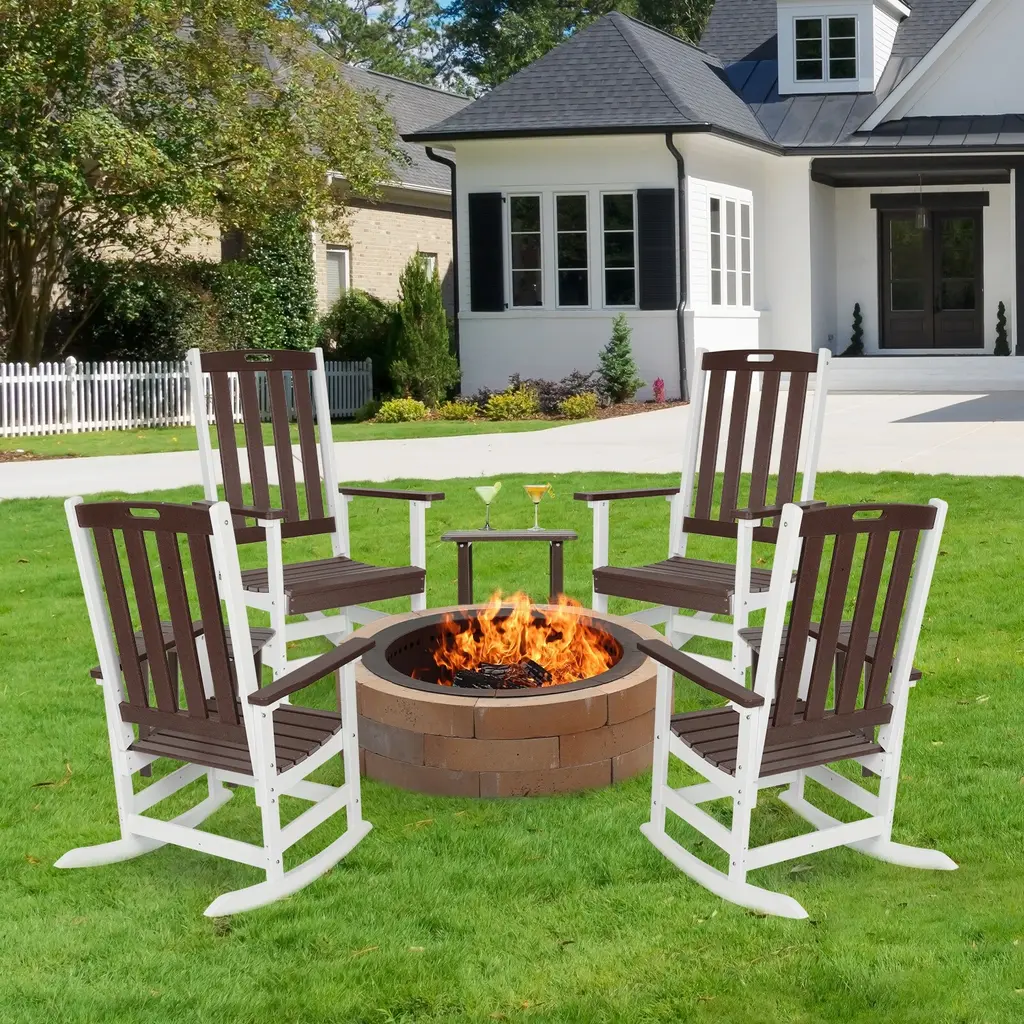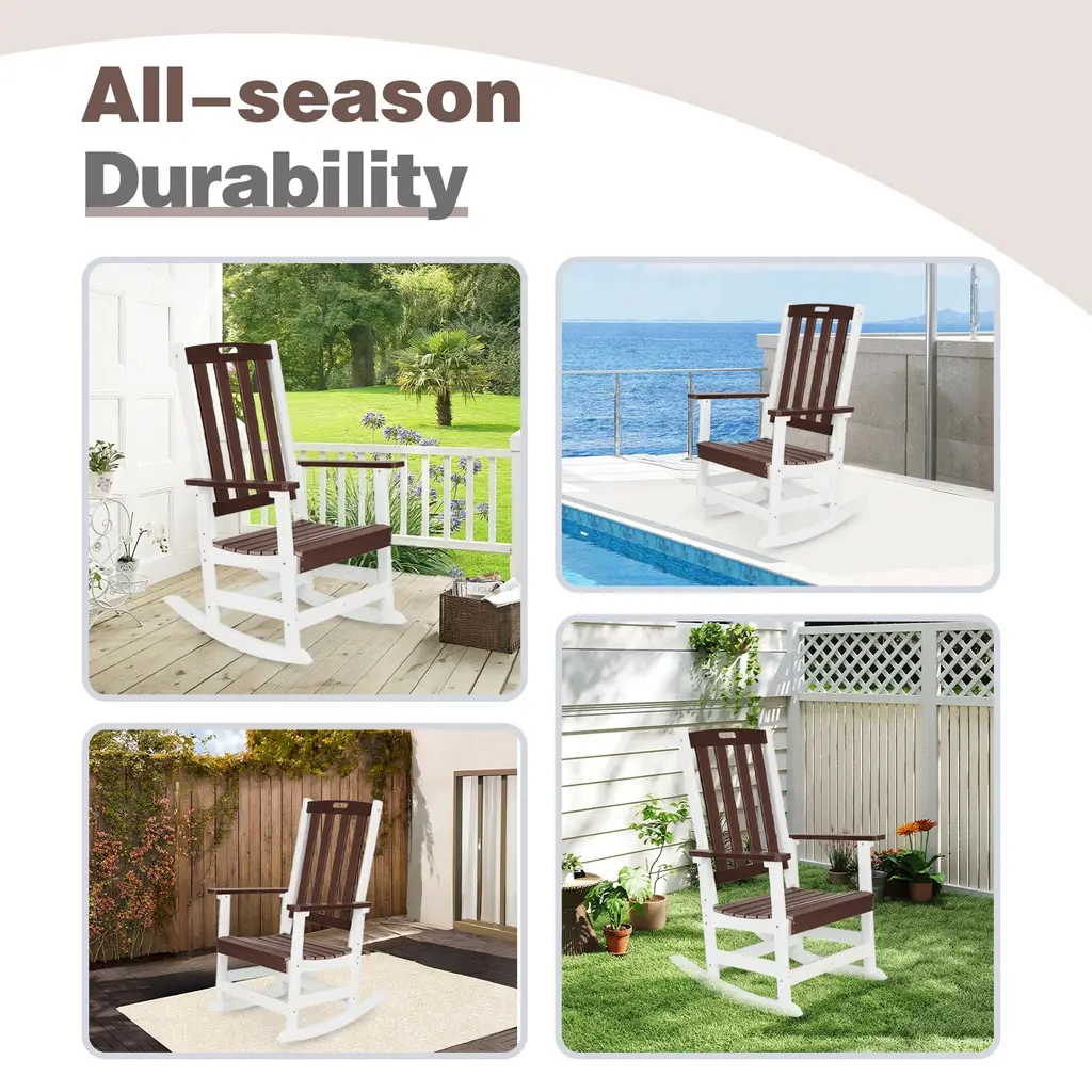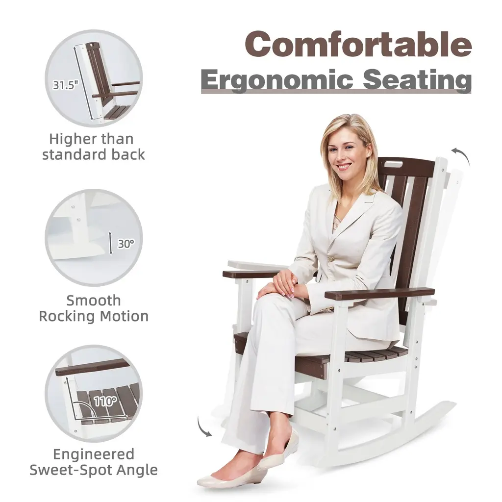 Aoodor Outdoor Rocking Chair, Ergonomic Hdpe Rockers With All-Weather Design For Patio Or Porch - N/a - Brown And White