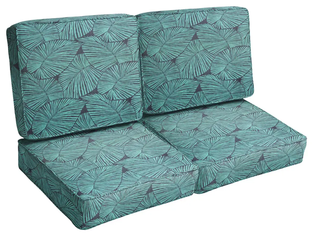 The ARDEN earthFIBER Outdoor Adirondack Cushion is made from our new ultra-soft plant-based fabric! The greenest cushions on the market with fabric that is made of a blend of 50% bamboo viscose and 50% polyester, partially recycled fill, and PFAS-Free C0 treatment. The adirondack cushion measures 21.5 in W x 48 in L x 5 in T. Our plant-based outdoor fabric resists fading, so your adirondack cushion looks vibrant for longer. Skin-safe C0 water protection helps your lounger cushion withstand continued outdoor use, while cleaning easily with just soap and water for low-maintenance upkeep. Inside this adirondack cushion is partially recycled polyester fiber fill to help it retain shape and provide long-lasting comfort during outdoor use. Although this chaise cushion is both water and UV-resistant, we recommend bringing it indoors when it rains or when not in use to preserve its lifespan and keep it looking beautiful. This season enjoy your outdoor space knowing that you have made an environmentally conscious and family-friendly decision you can feel good about.