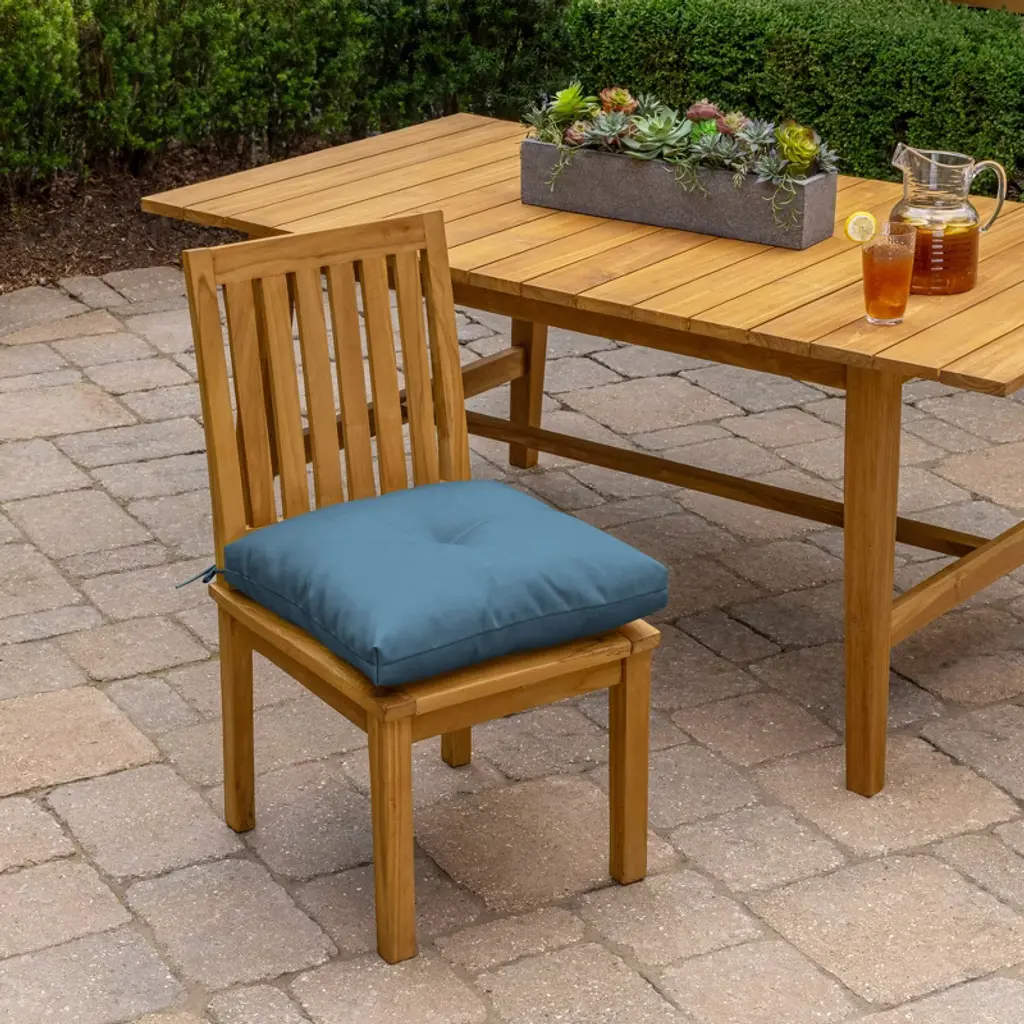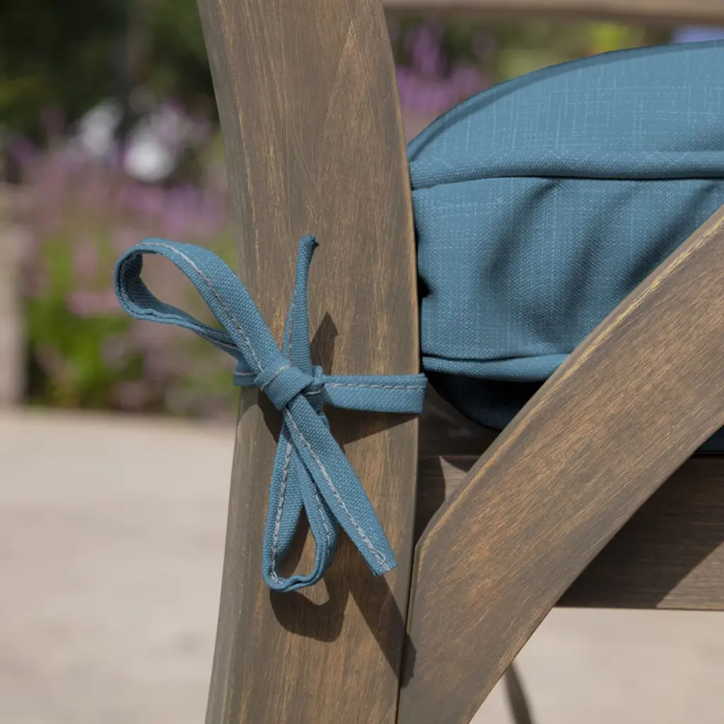 The ARDEN Plush Blowfill Seat Cushion, perfect for your Rocking Chair. This cushion is made with soft polyfiber fill and long-lasting outdoor polyester fabric with PFAS-Free C0 treatment. Creating an ultra-comfortable outdoor seat cushion that is also eco-friendly and Skin-safe for your family. This outdoor chair cushion measures 20in W x 20 in L x 4.5 in T. The 100% printed polyester outdoor fabric resists fading, so your patio cushion looks vibrant for longer. Skin-safe C0 water protection helps your seat pad cushion withstand continued outdoor use, while cleaning easily with just soap and water for low-maintenance upkeep. Two sets of ties make sure your outdoor seat cushion stays firmly in place, while the center tuft adds a decorative touch. Inside this outdoor chair cushion is 100% polyfiber blowfill to help it retain shape and provide long-lasting comfort during outdoor use. Made from 100% recycled plastic, the polyfiber fill provides an environmentally friendly and durable option for your backyard patio. Although this patio cushion is both water and UV-resistant, we recommend bringing it indoors when it rains or when not in use to preserve its lifespan and keep it looking beautiful.